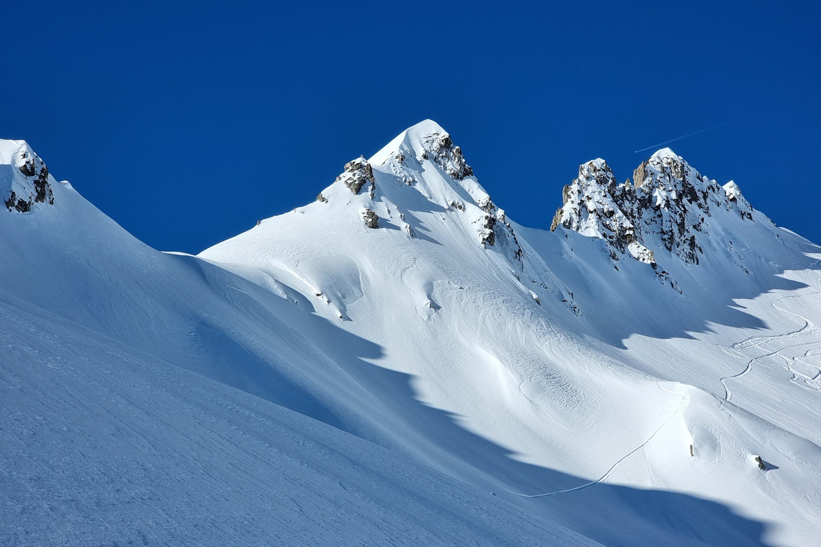passages de neige frisette, face au cimes emblématiques de Vanoise.