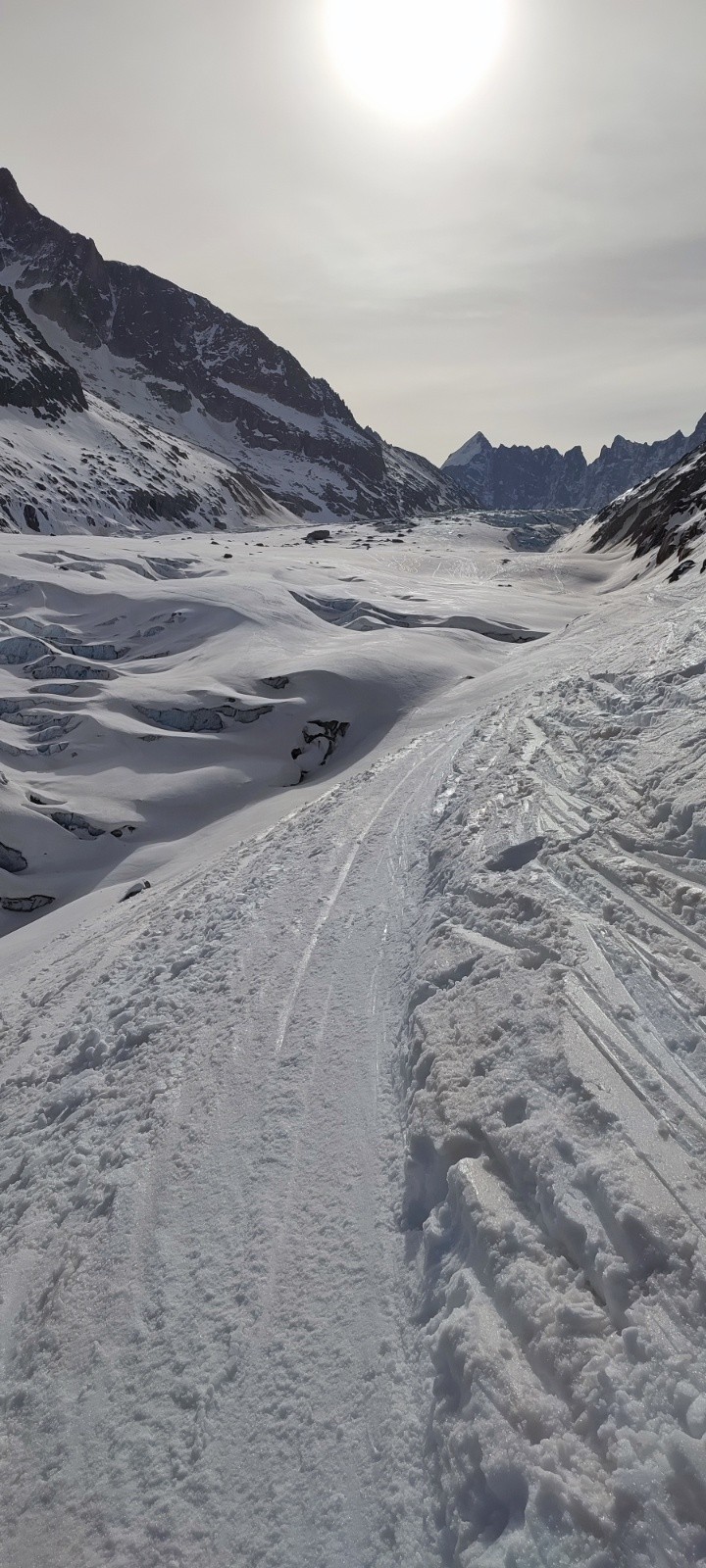 Ça monte a partir du pluviomètre jusqu’a la moraine rive droite du glacier d’argentiere dans une bonne trace