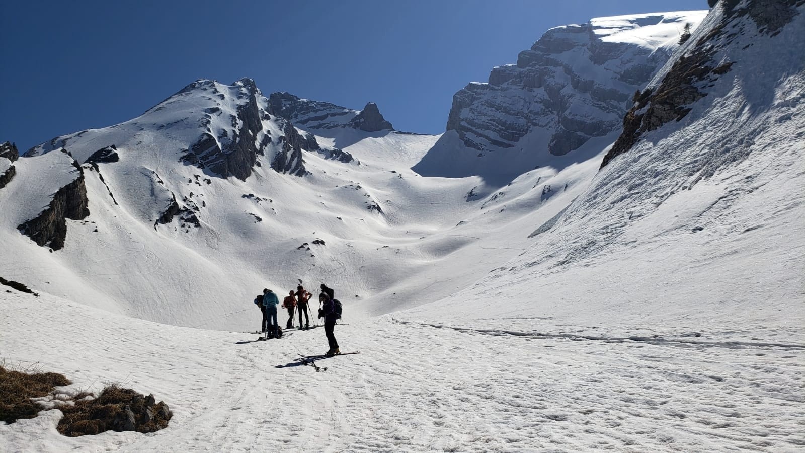 Horaires : 9h30 départ, neige dure, couteaux et devers en neige dure un peu tendu après les paravalanches. La neige est restée dure jusqu'au col. Descente env 14h, en choisissant le sable et l'expo soleil, très bonnes conditions de descente dans une neige souple. il est aussi possible de monter par le Fernuy pour éviter les longs devers.