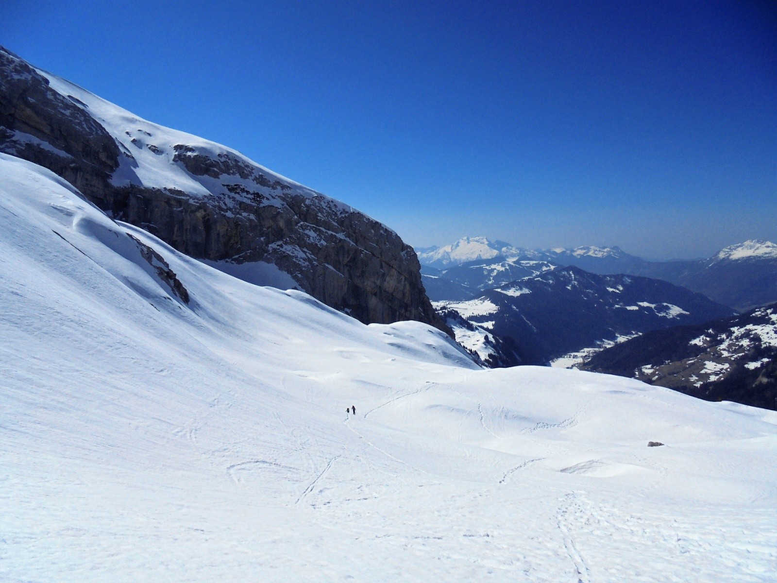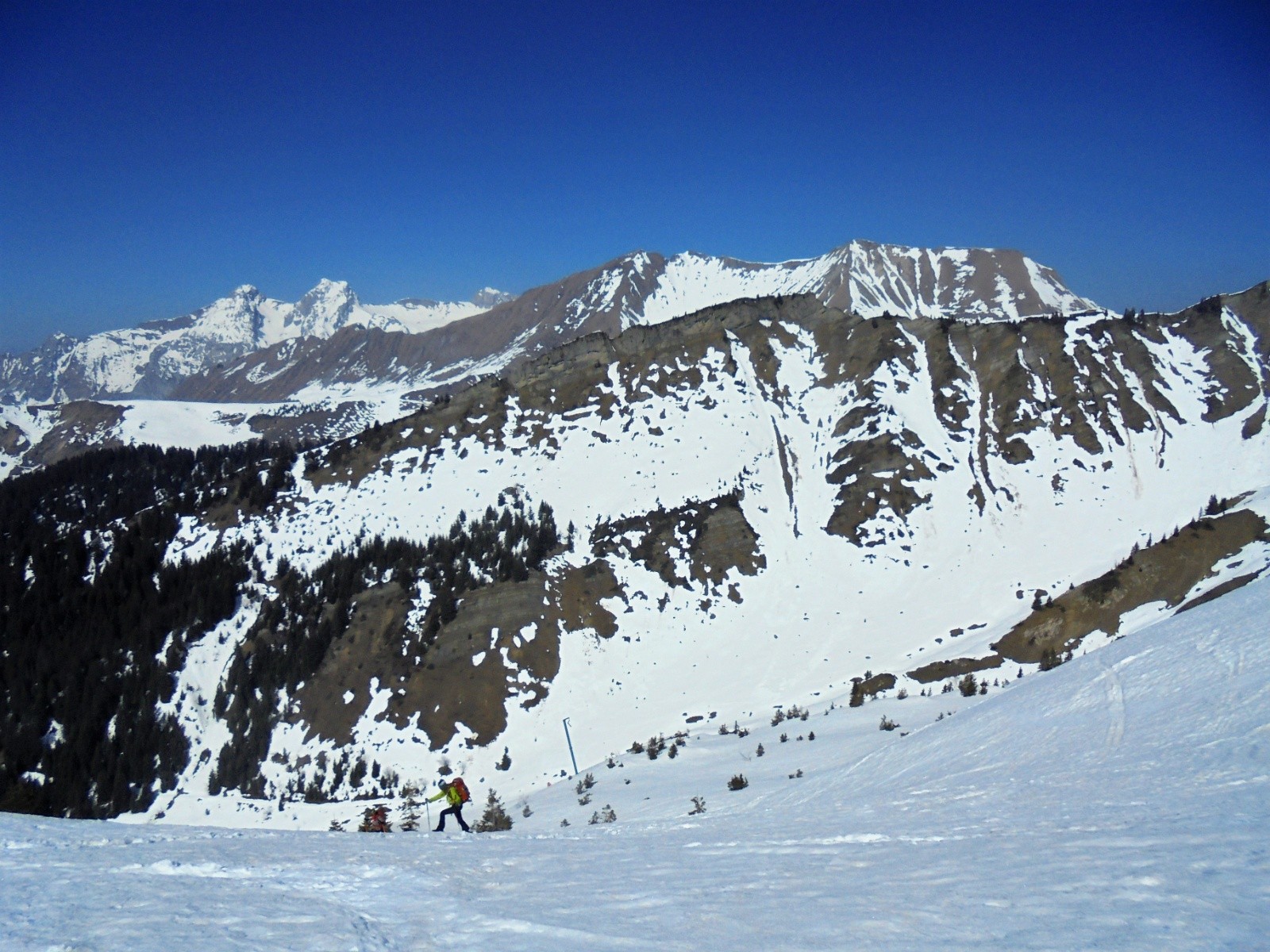 Conditions pour le ski :excellentes conditions de neige de printemps jusqu'au mur des Troncs où l'enneigement est limite dans la partie basse, quelques passages sur herbe et deux déchaussages pour rejoindre le parking .