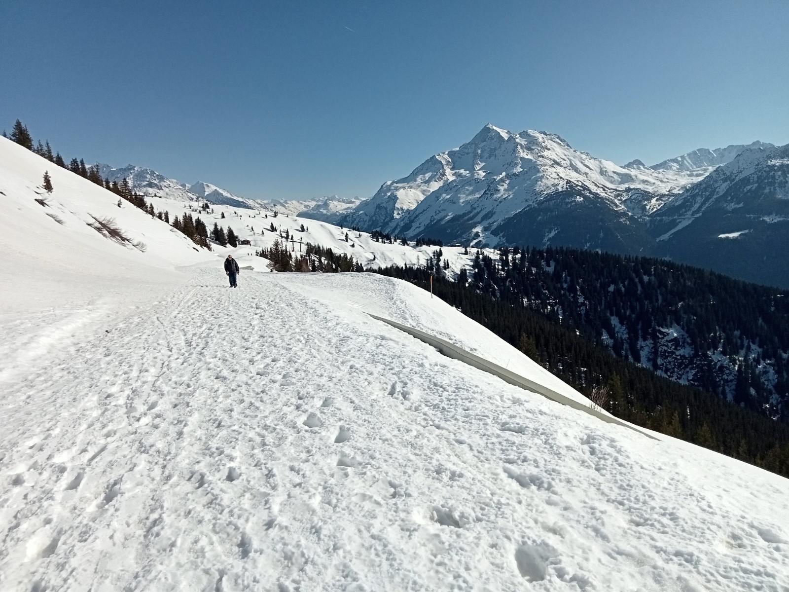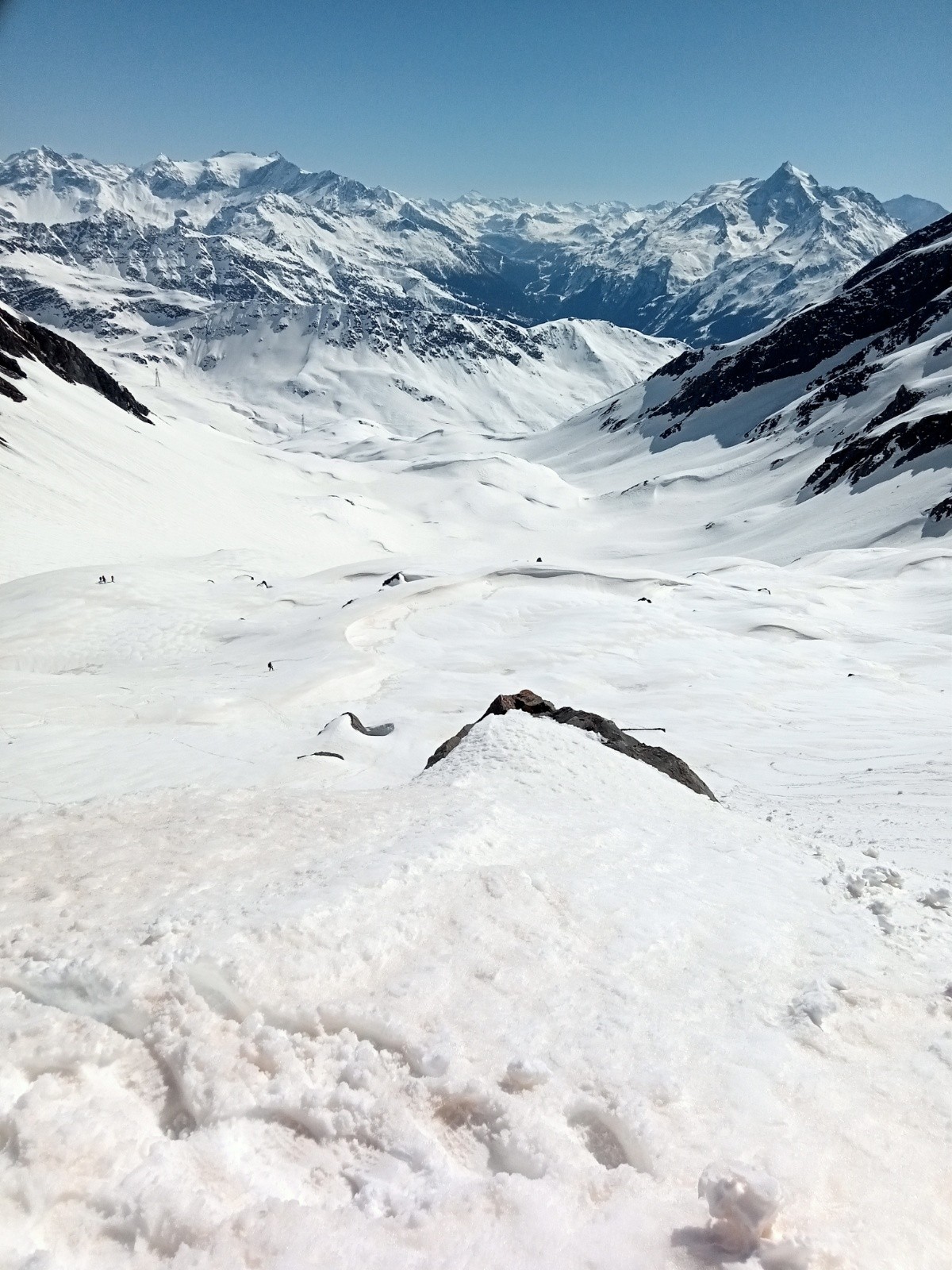 Conditions pour le ski : Neige dur voir gelé sur les pistes de ski, puis bonne moquette☆☆☆☆☆ jusqu'à la route du col du Petit Saint Bernard, route parfois un peu trafollée, bonne glisse et damée survle dernier km☆☆☆ à ☆☆☆☆