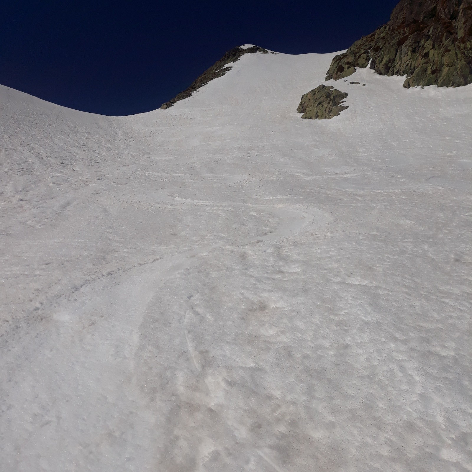 Conditions pour le ski : Moins bon regel qu'hier donc neige un poil trop revenue sur les faces skiées.