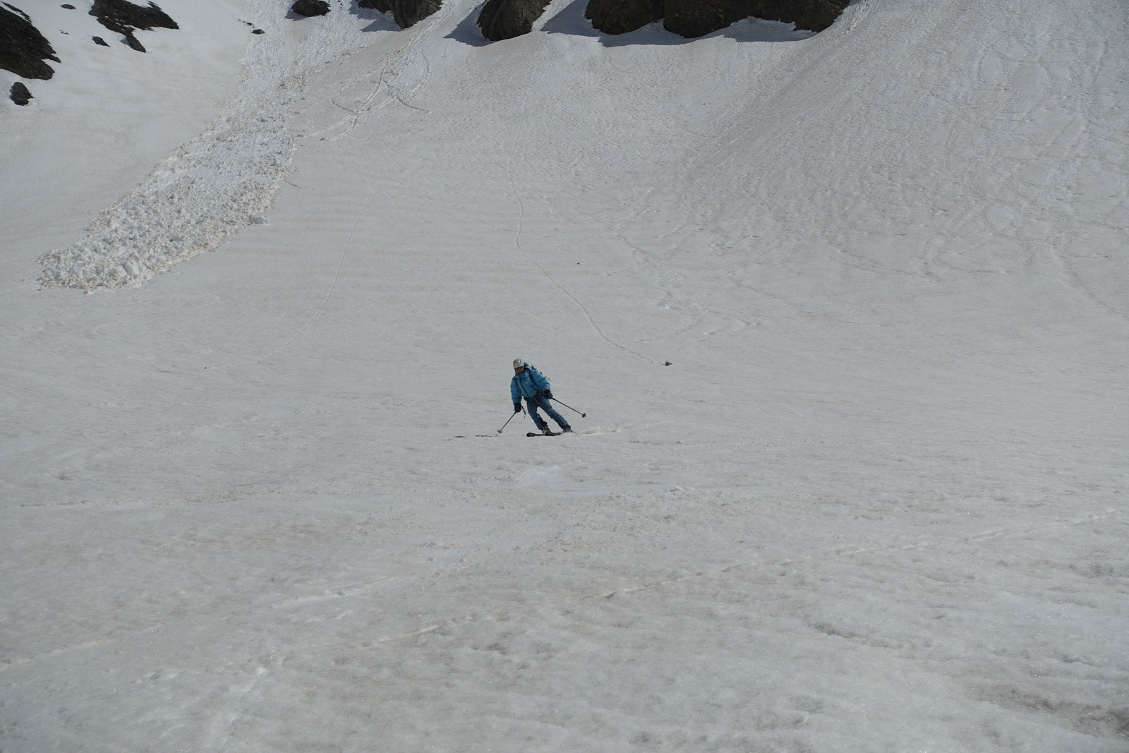 Conditions pour le ski : Moquette entre 1600 et 2750m, Excellente dans le raide, un peu plus gondolée sur le plat. Pourrie sous 1600m.