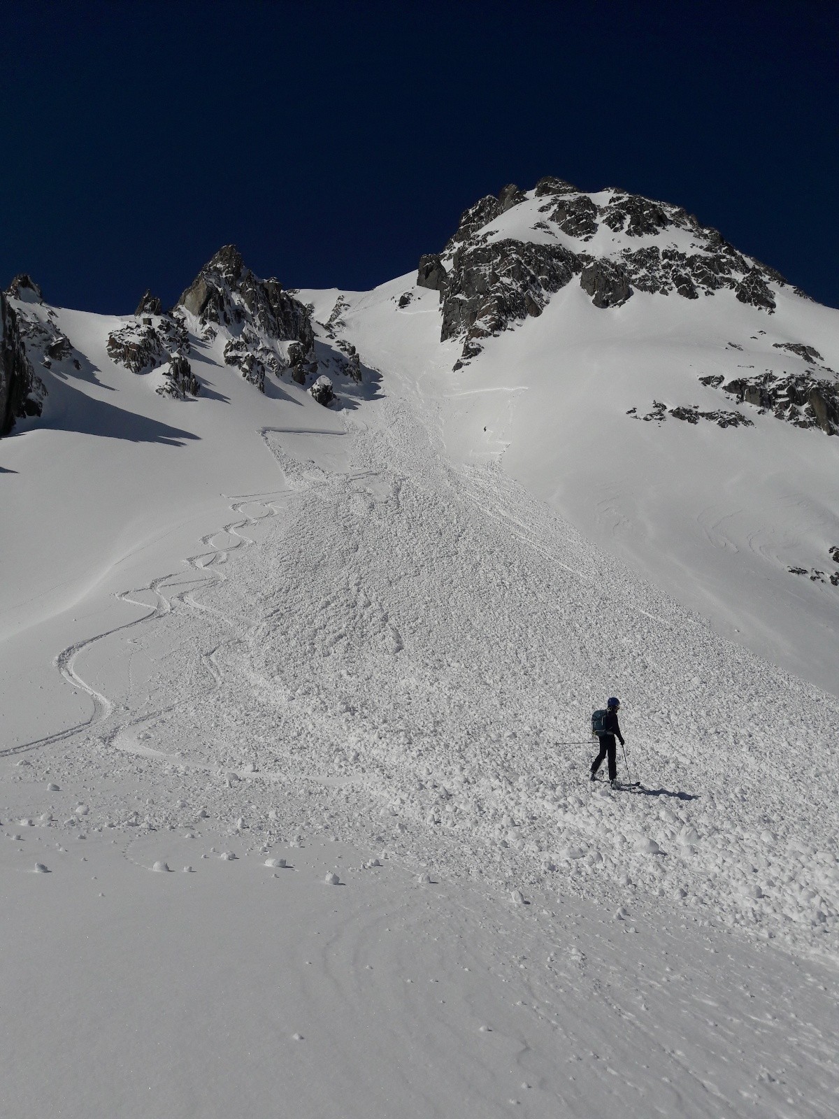 On a eu (très) chaud aux fesses. On ne s'attendait pas à la possibilité d'une avalanche d'une telle ampleur qui a peu de chose prêt aurait pu être dramatique, si elle nous avait surpris tous les deux à la montée quelques minutes auparavant...