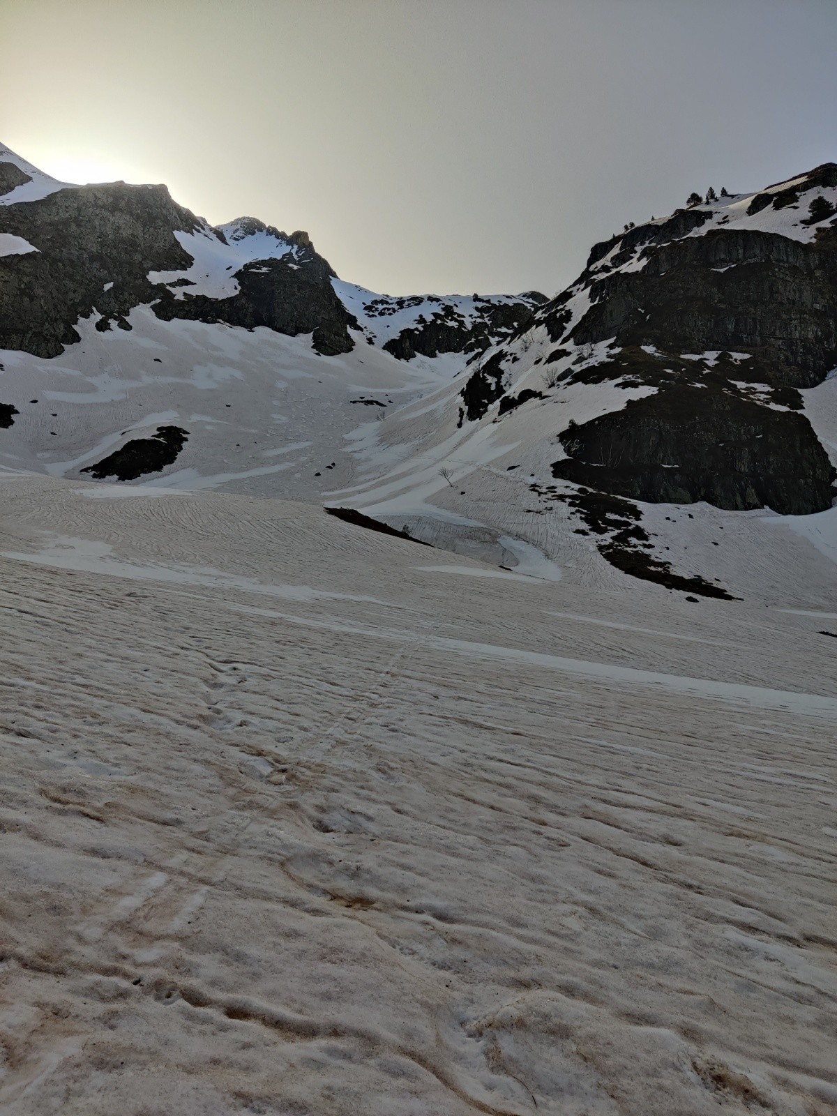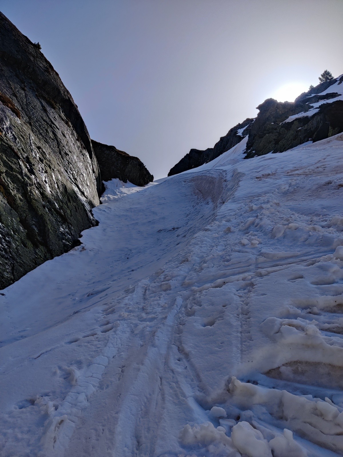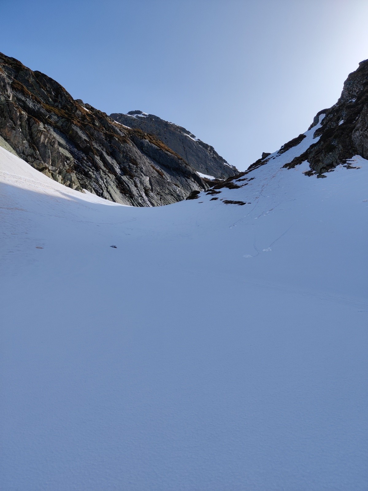 Descente en récupèrent le valons le plus a l'ouest pour éviter la grosse coulés puis l'itinéraire normal.
