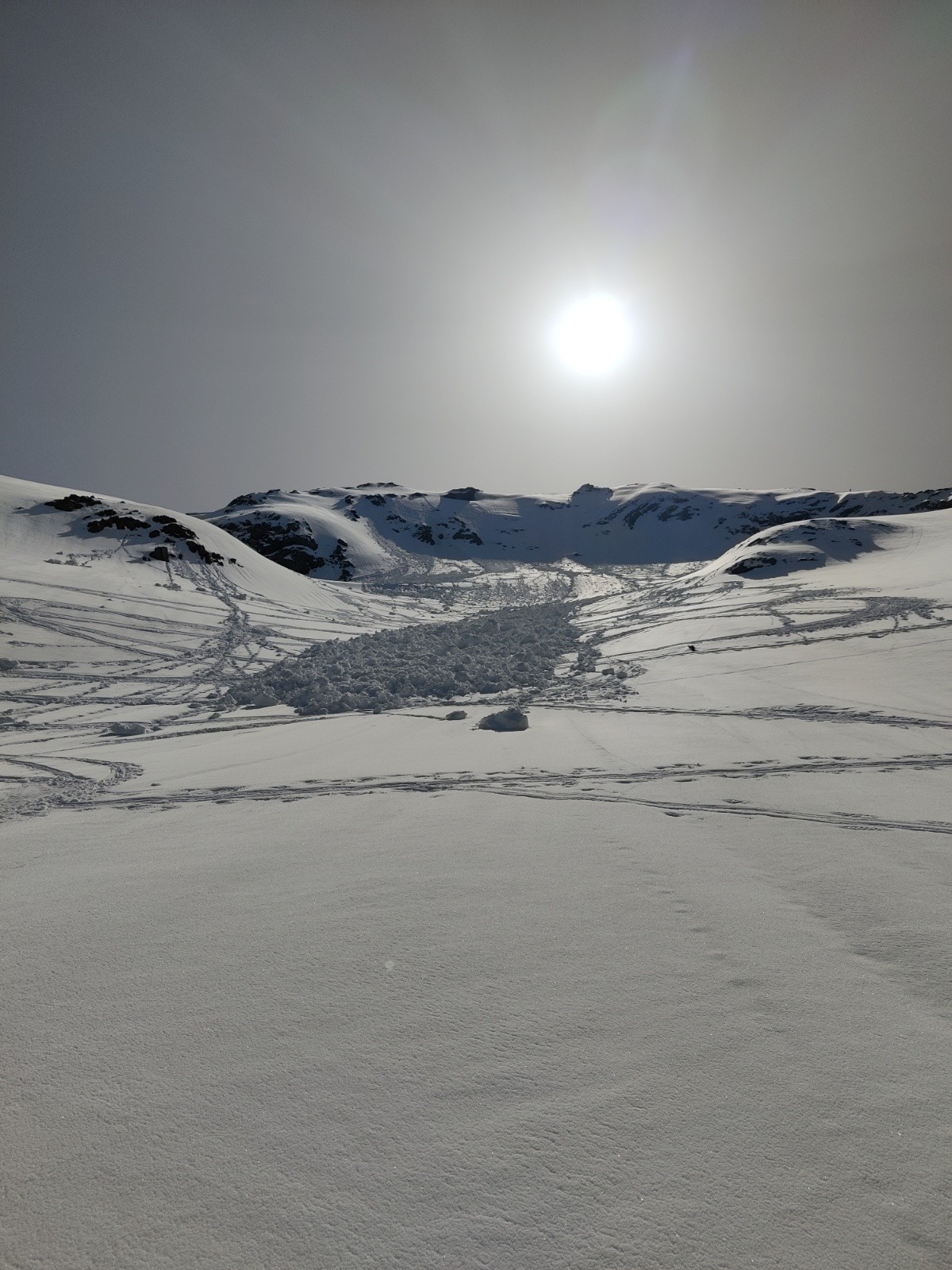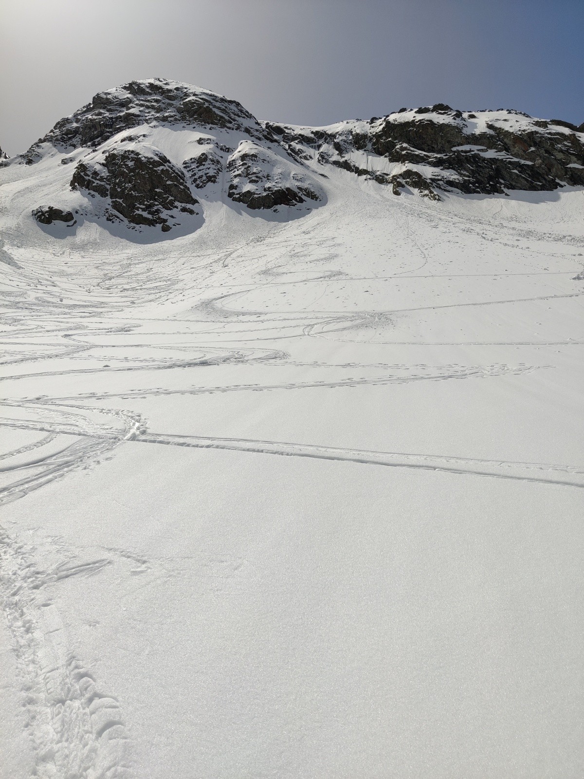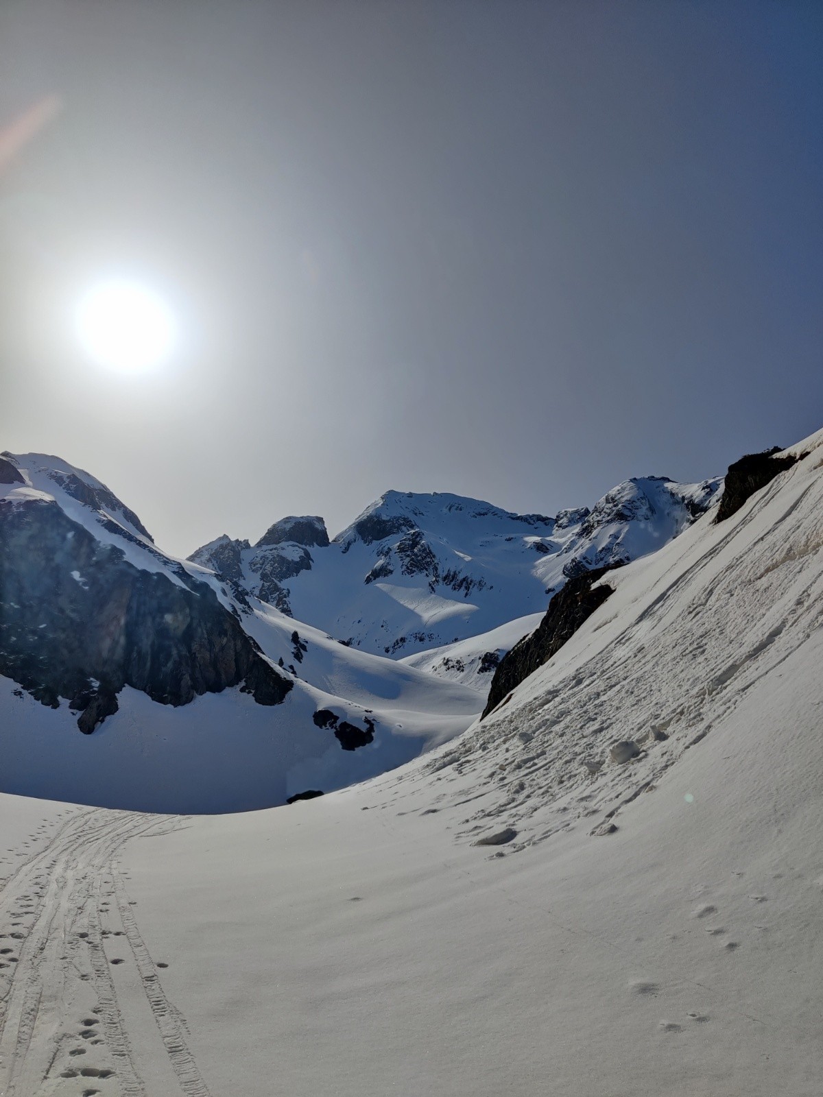 Descente en récupèrent le valons le plus a l'ouest pour éviter la grosse coulés puis l'itinéraire normal.