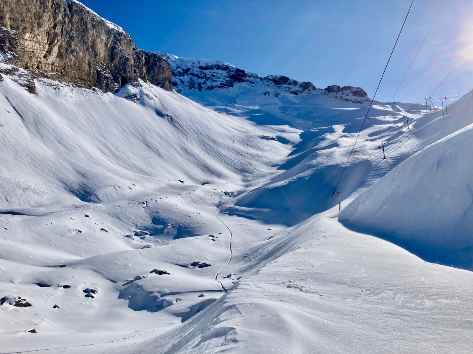 Conditions pour le ski : Excellentes si on sait retrouver les pistes avant la côte 2000m ( en se faisant léger léger ).