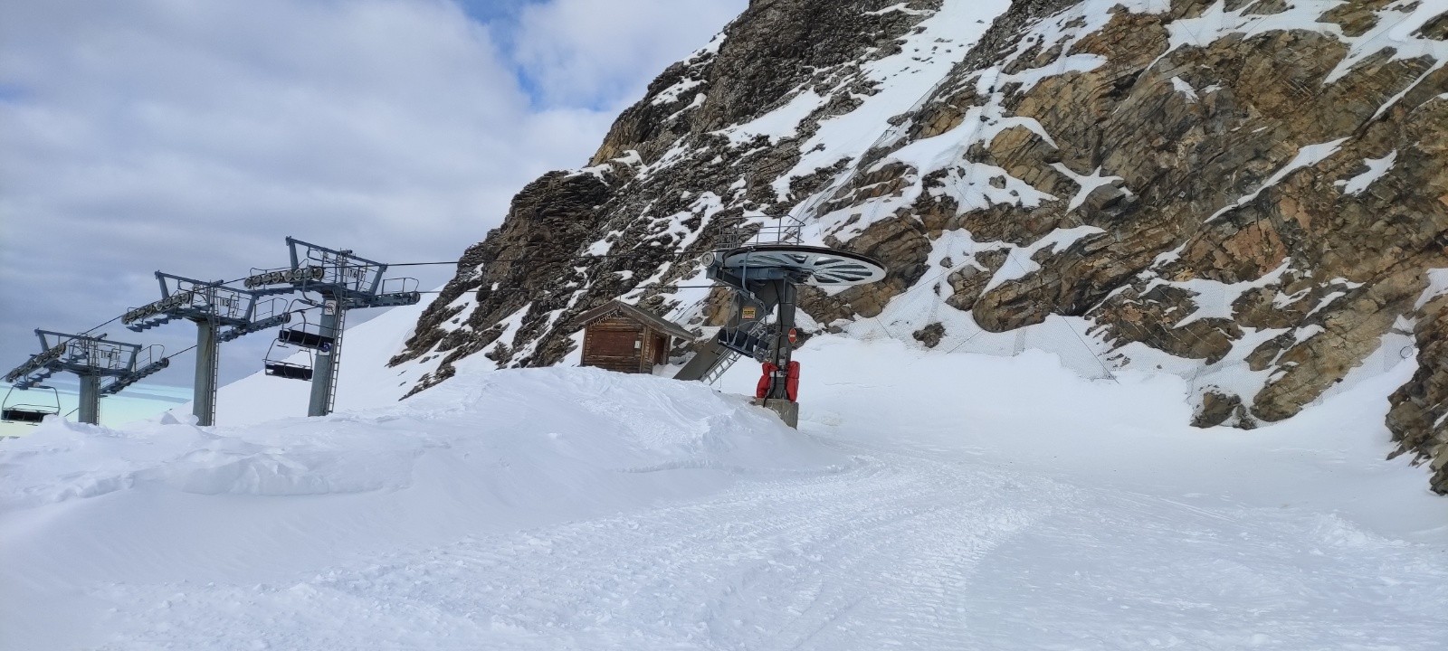 Conditions pour le ski : béton sur la piste, trop de blocs lié au travail des chenillettes, mieux en hors piste mais quelques cailloux qui sortent, pas trop de neige dans l'ensemble