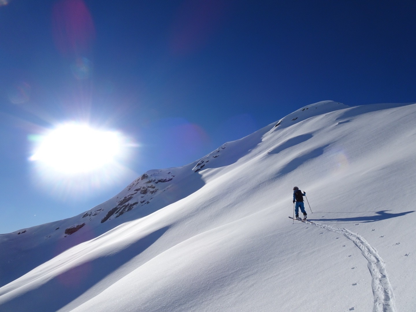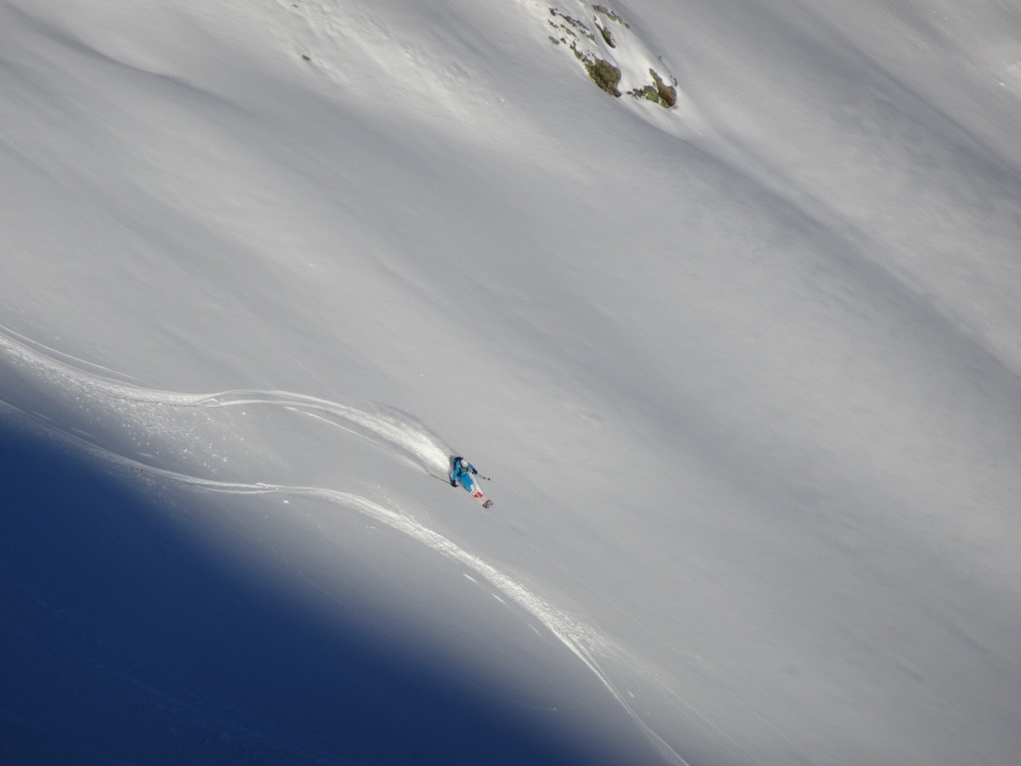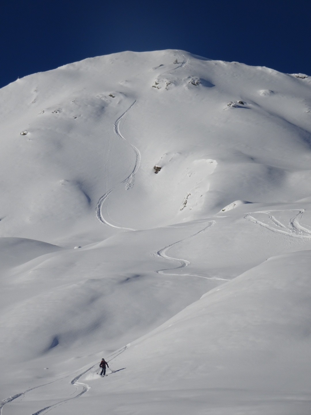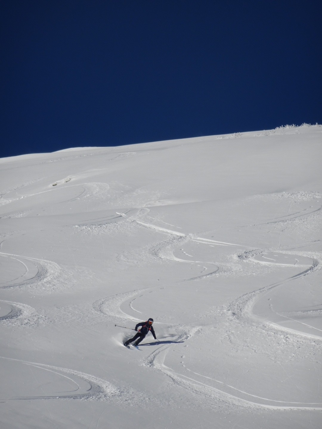 Tous les côtés sont bon, du nord au sud, une neige poudreuse compacte qui permet de skier vite et sans craindre les requins ! J’ai remis les 115mm au patin pour en chier un peu à la montée, par contre quel bonheur à la descente, c’est incroyable comme ça lisse le terrain, on saute dans tous les sens, à bloc… Manque juste des descentes de 1000m de D- et c’est parfait 😂!!! Soyons encore patient, la sous couche est maintenant là dans ce