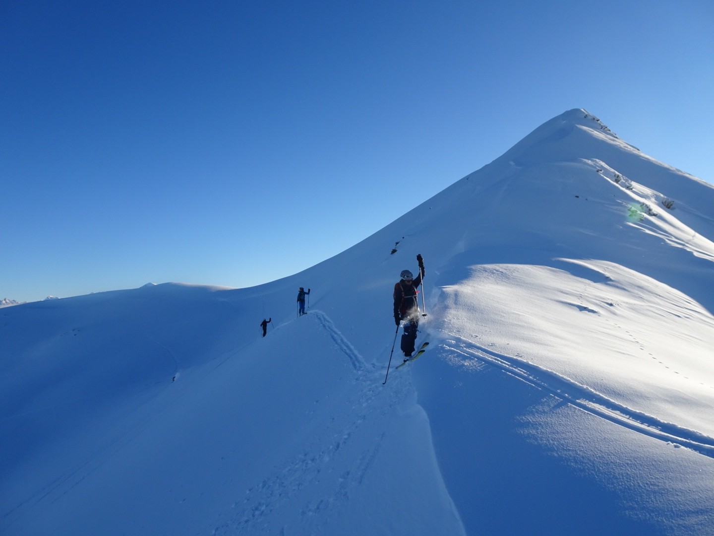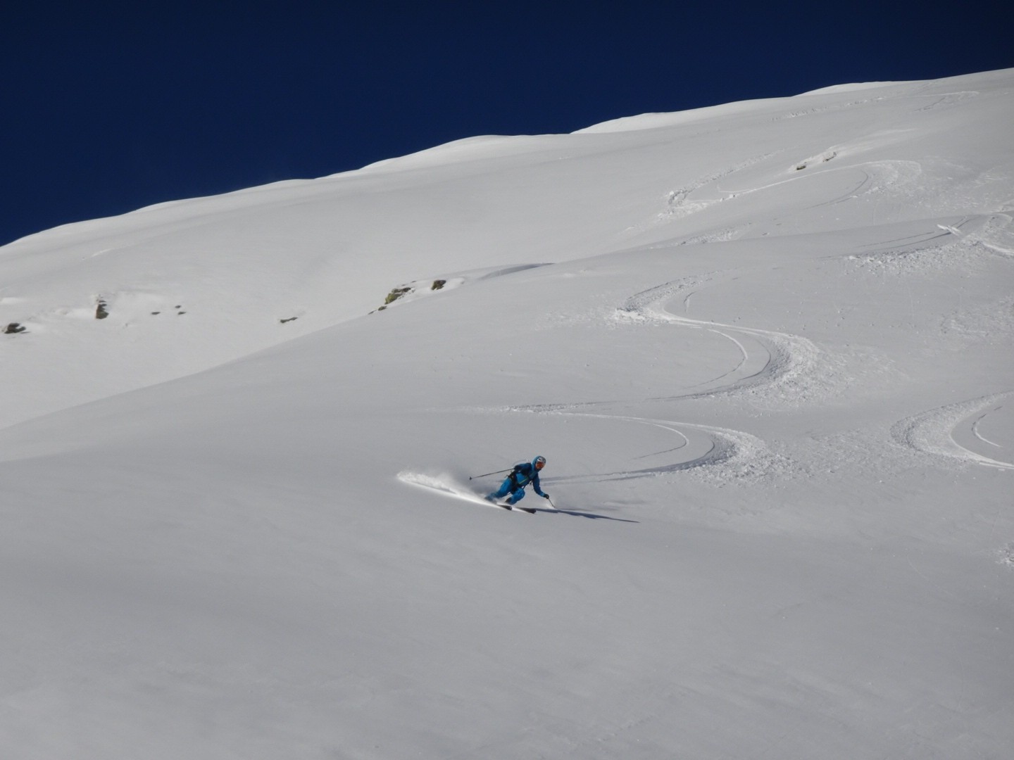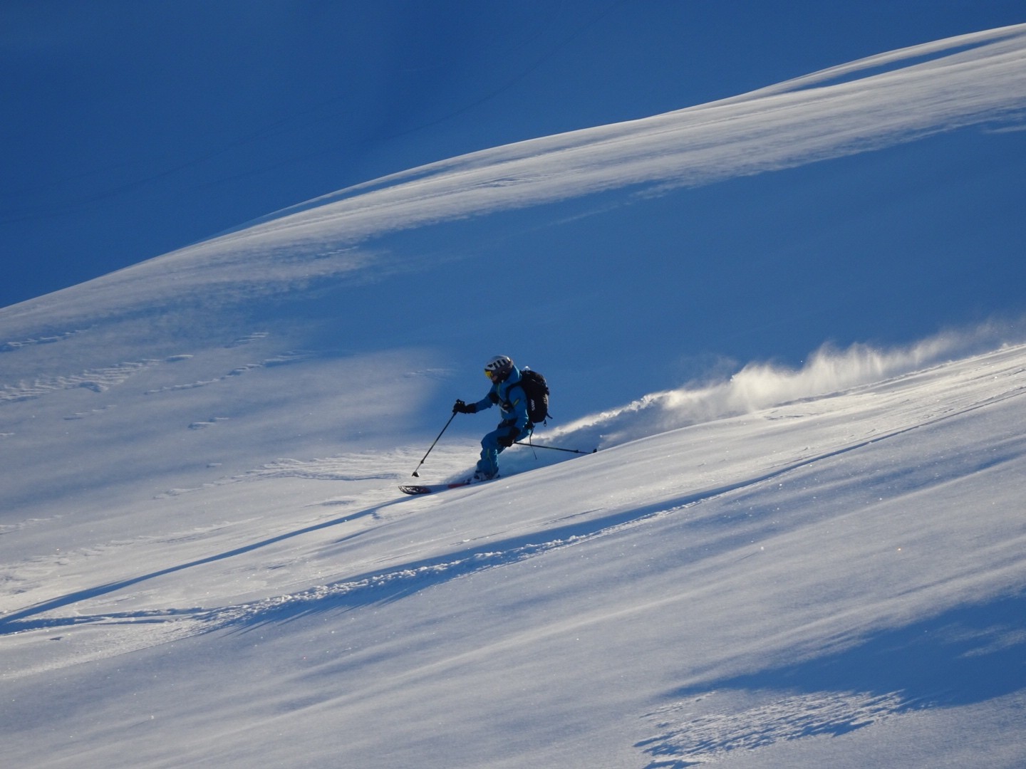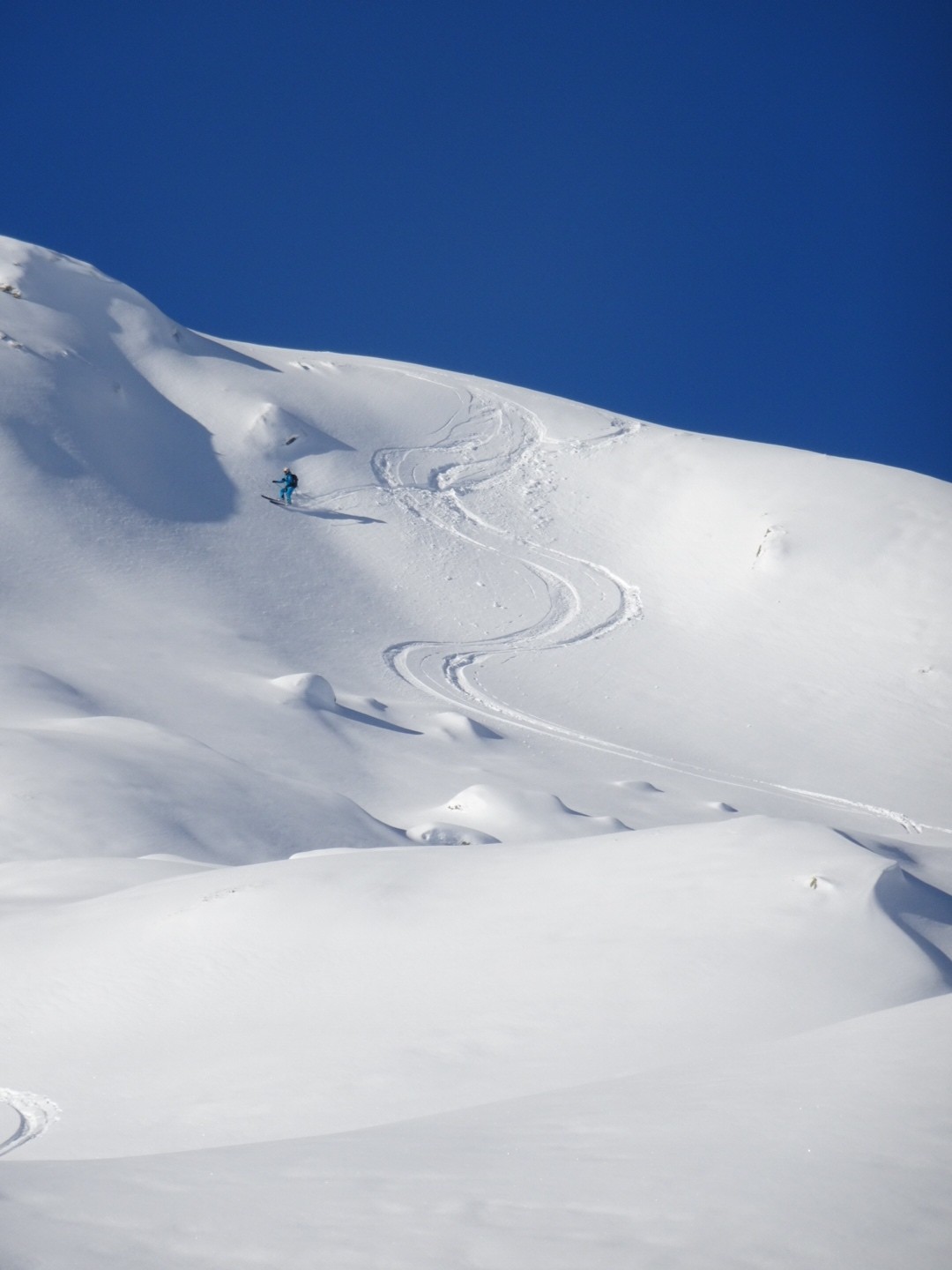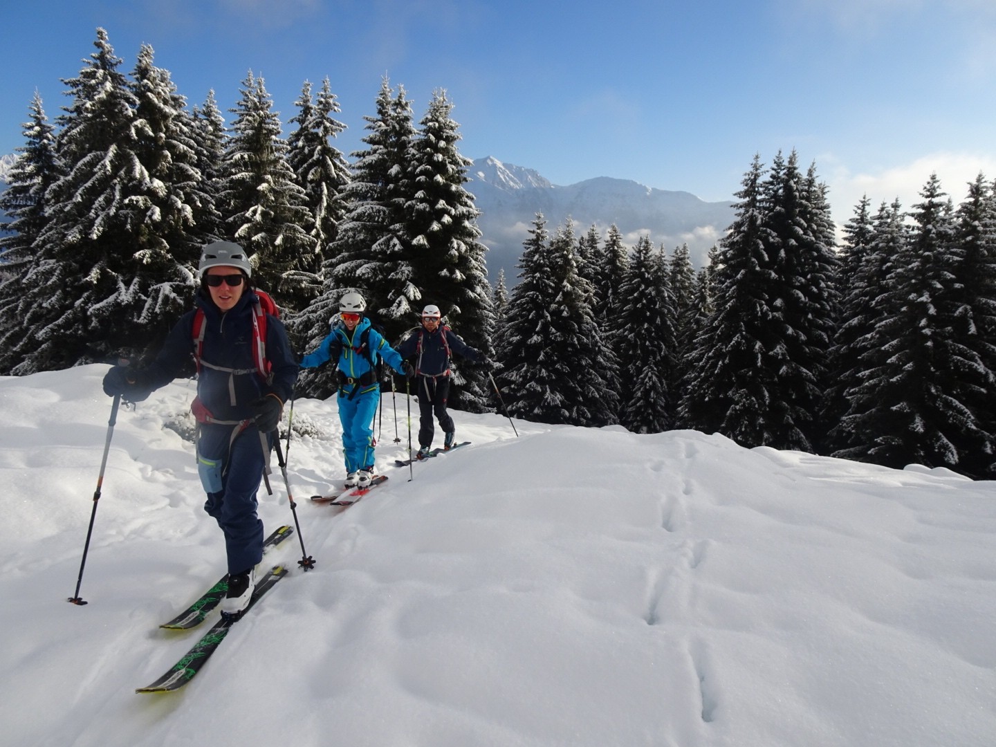 Tous les côtés sont bon, du nord au sud, une neige poudreuse compacte qui permet de skier vite et sans craindre les requins ! J’ai remis les 115mm au patin pour en chier un peu à la montée, par contre quel bonheur à la descente, c’est incroyable comme ça lisse le terrain, on saute dans tous les sens, à bloc… Manque juste des descentes de 1000m de D- et c’est parfait 😂!!! Soyons encore patient, la sous couche est maintenant là dans ce