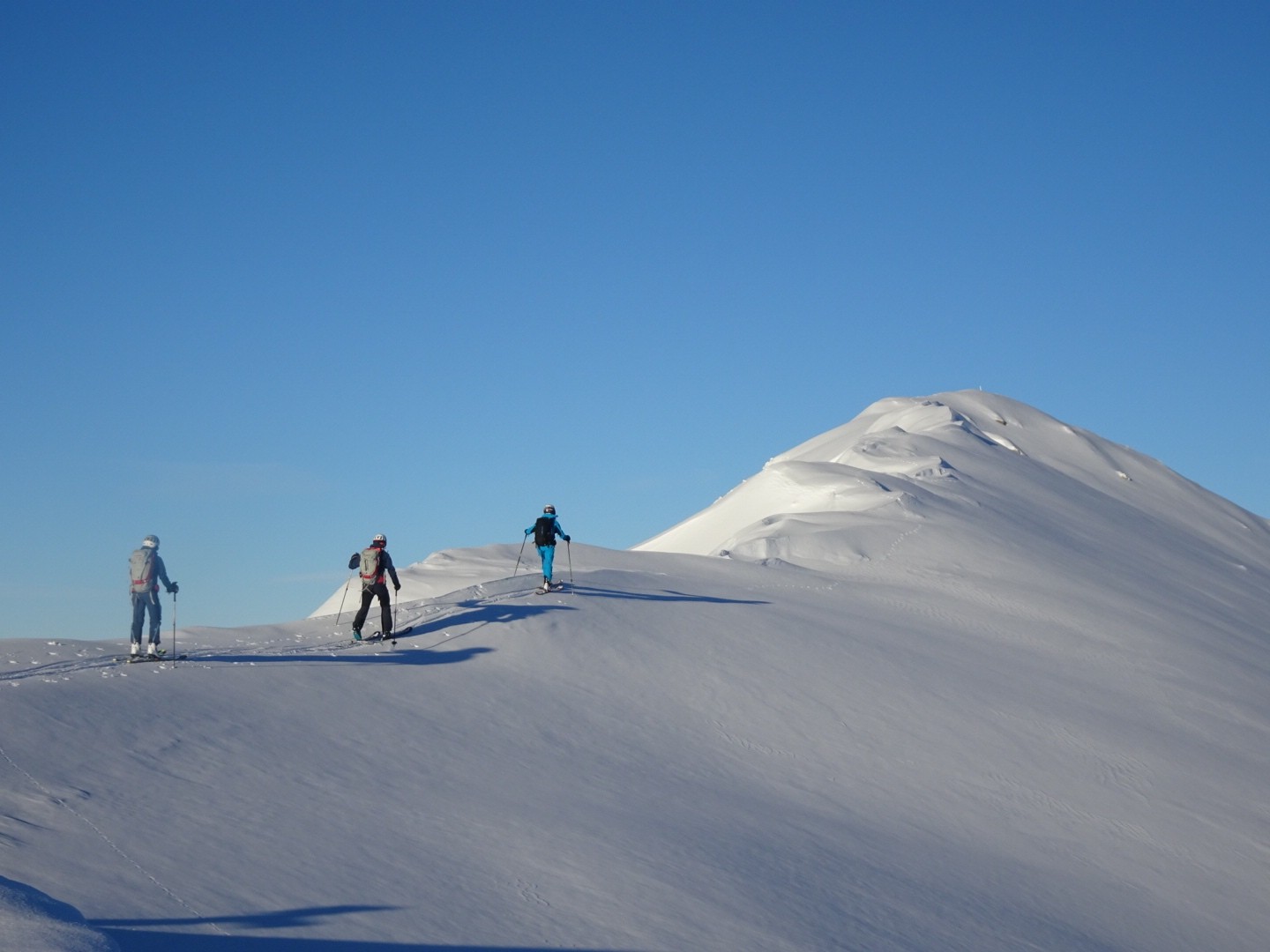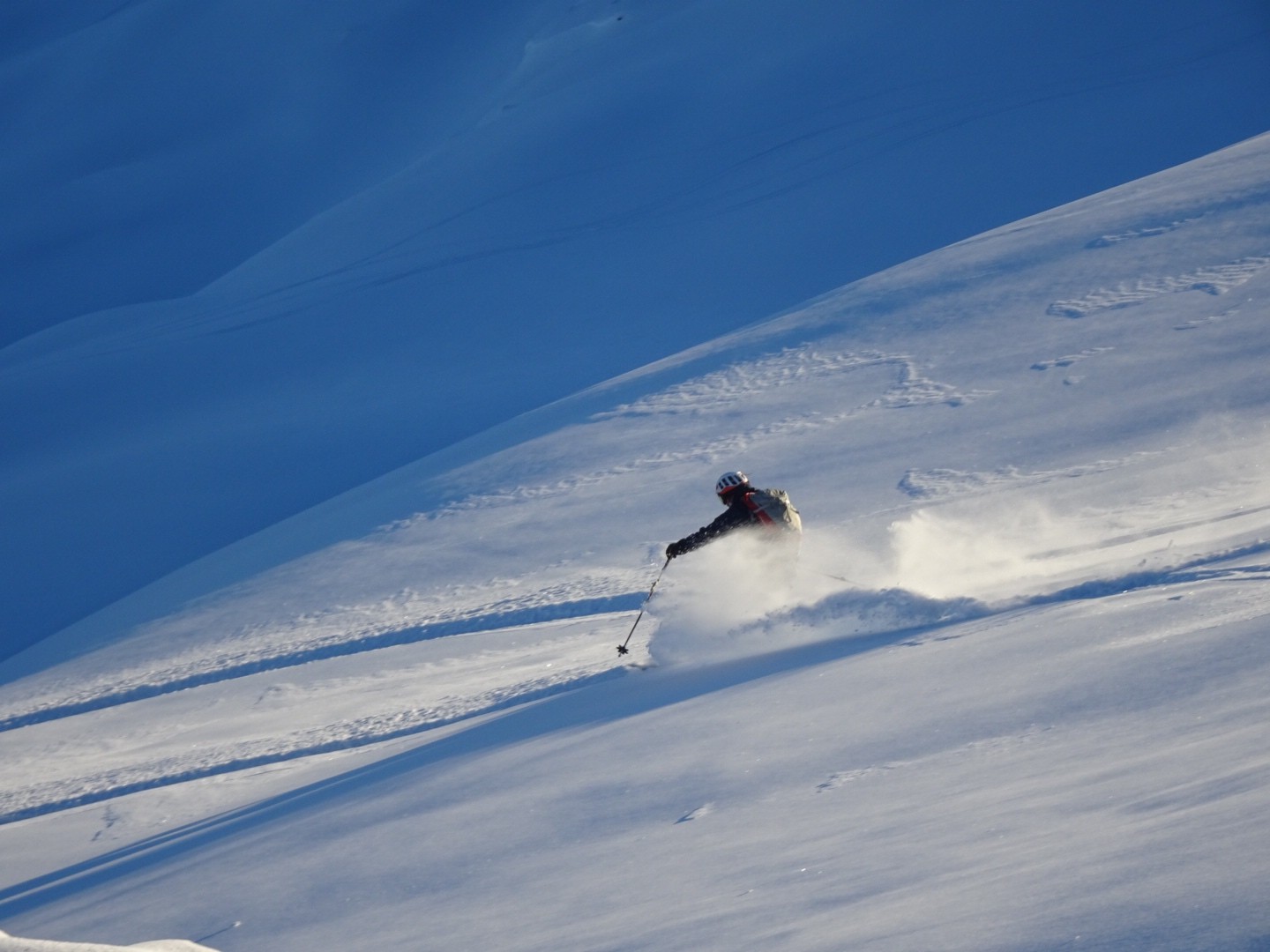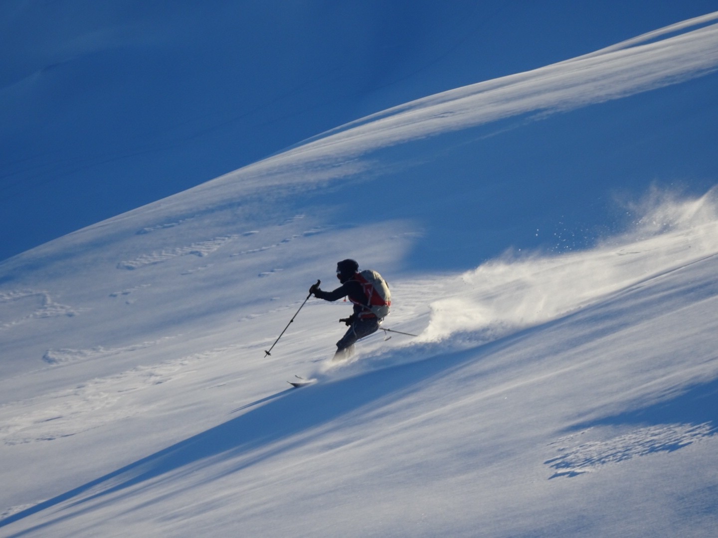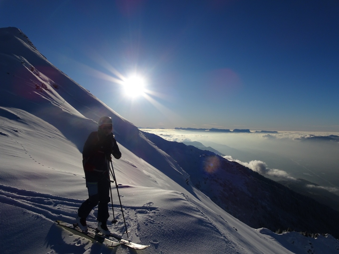 Tous les côtés sont bon, du nord au sud, une neige poudreuse compacte qui permet de skier vite et sans craindre les requins ! J’ai remis les 115mm au patin pour en chier un peu à la montée, par contre quel bonheur à la descente, c’est incroyable comme ça lisse le terrain, on saute dans tous les sens, à bloc… Manque juste des descentes de 1000m de D- et c’est parfait 😂!!! Soyons encore patient, la sous couche est maintenant là dans ce