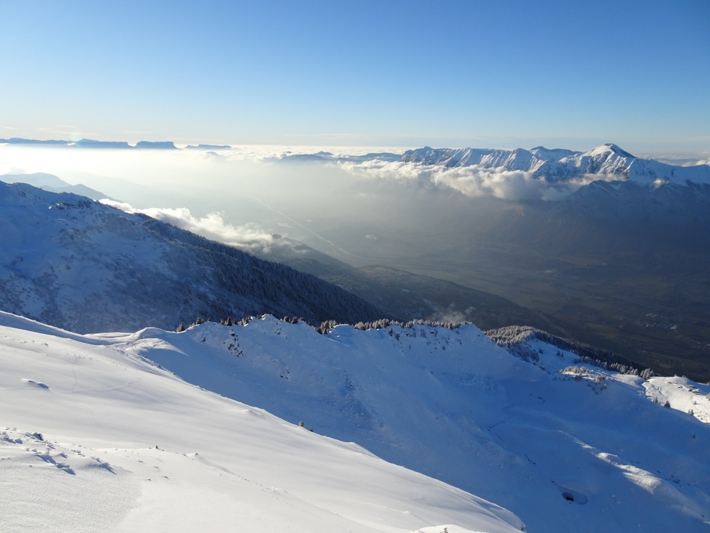 Conditions pour le ski : très bonne neige au dessus de 1700m, dessous plus dure avec quelques cm de poudre.