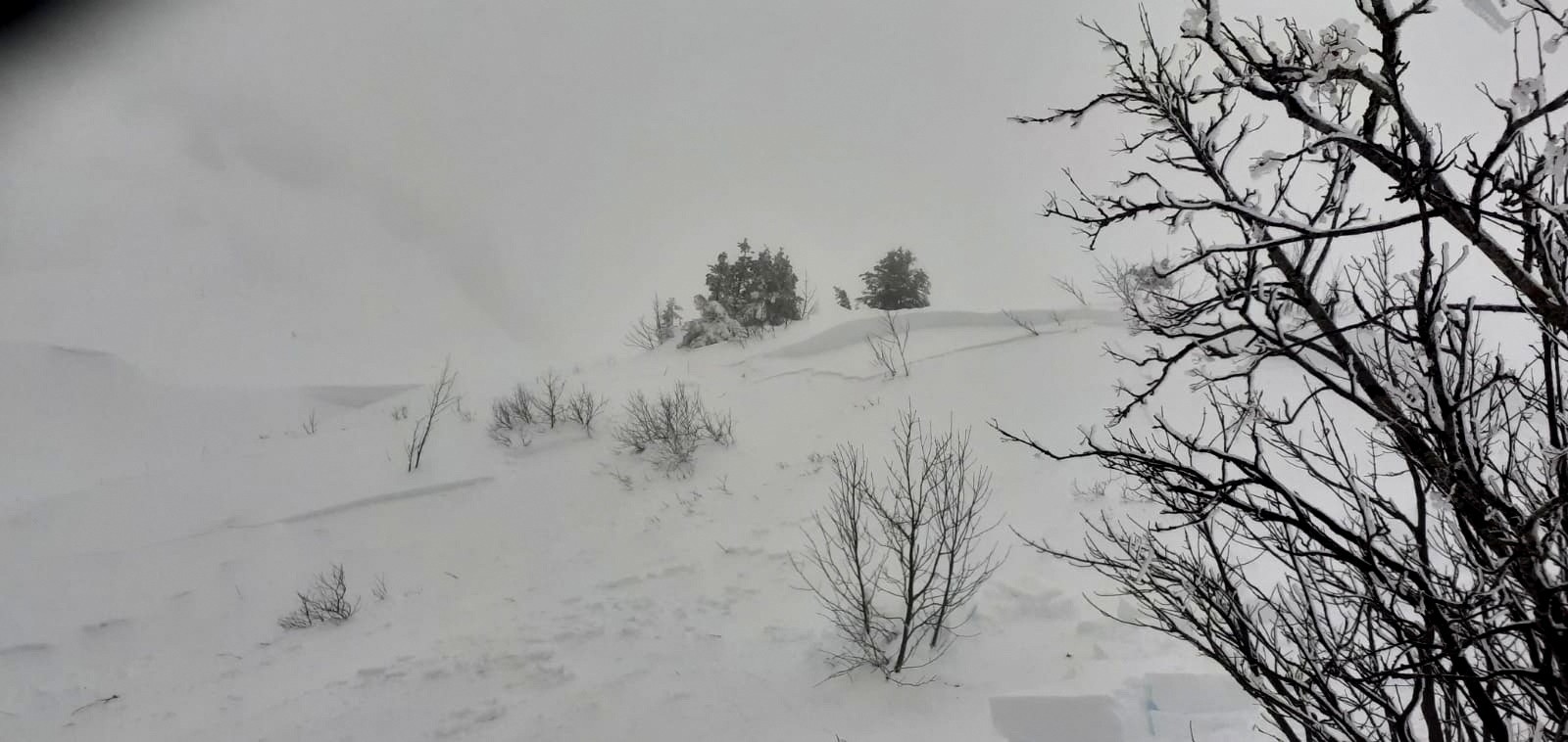 Stabilité : Situation avalancheuse typique : neige ventée, neige humide. DÉPARTS SPONTANÉS : au fil des précipitations, quelques moyennes voire une grande en neige humide, plutôt en dessous de 1800 m. DÉCLENCHEMENTS PROVOQUÉS : Vers les plus hauts sommets du massif, formation de nouvelles plaques sous le vent de Sud-Ouest. Autour du secteur Nord, ces plaques peuvent se superposer à des couches fragiles.