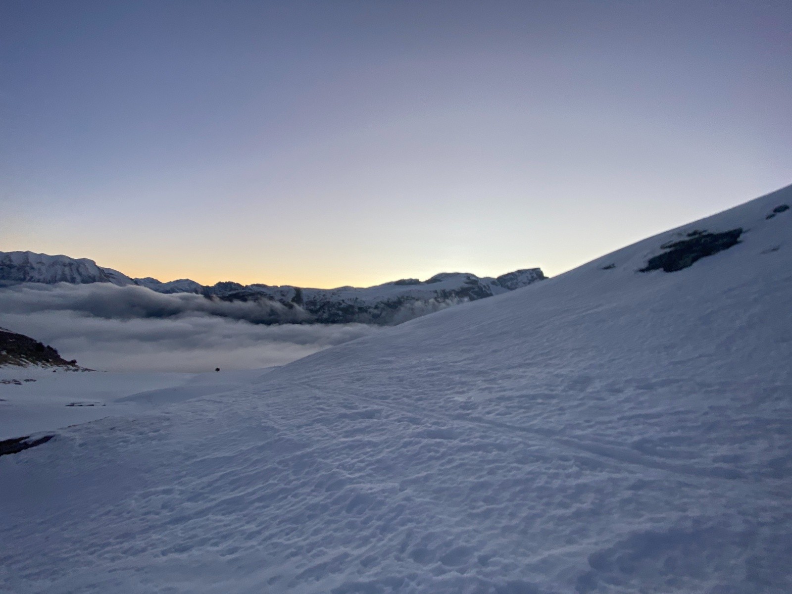 Malgré les conditions assez moyenne de ces derniers temps, on décide d'aller jeter un coup d'oeil au face sud du coin avec Raphael. On est pas des pros ducou on avait juste prié pour des conditions de printemps en face sud en espérant pouvoir se faire un couloir à la tête de vachères.