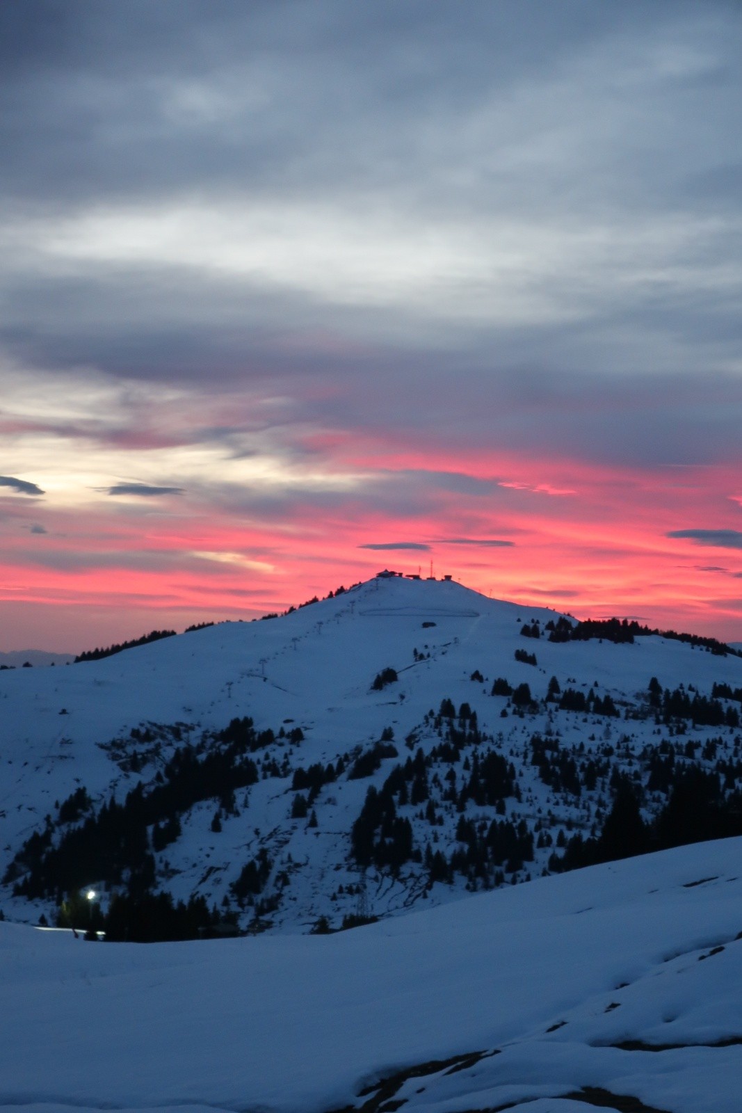Conditions pour le ski : assez bon en restant sur les itinéraires piétons et les pistes de ski de la station. Sur le Hut, transfo en Sud en hors piste, assez lourd mais pas pire.