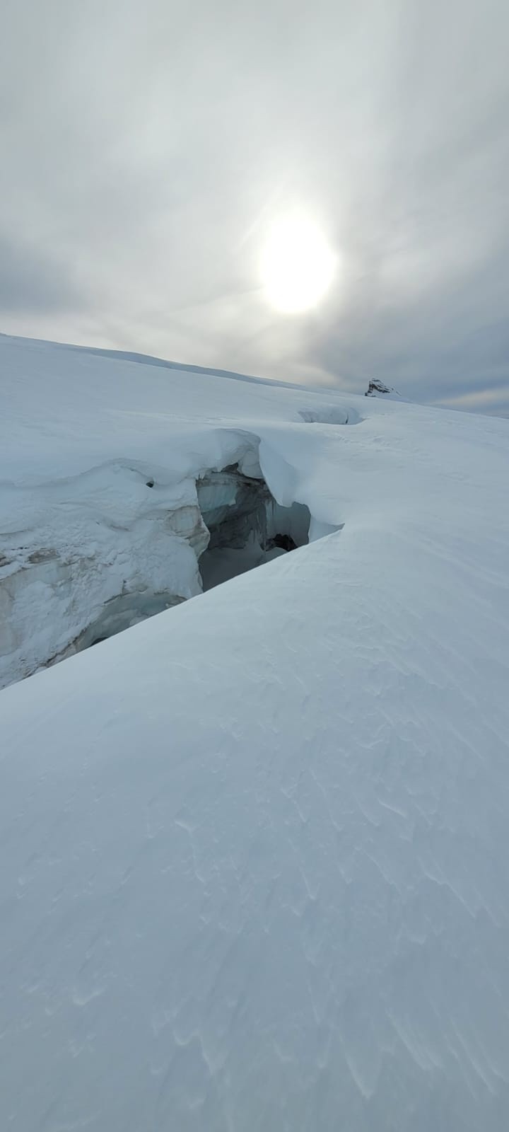 Activité avalancheuse : RAS car très peu de neige mais glacier crevassé actuellement (voir photo) donc matériel de glacier nécessaire.