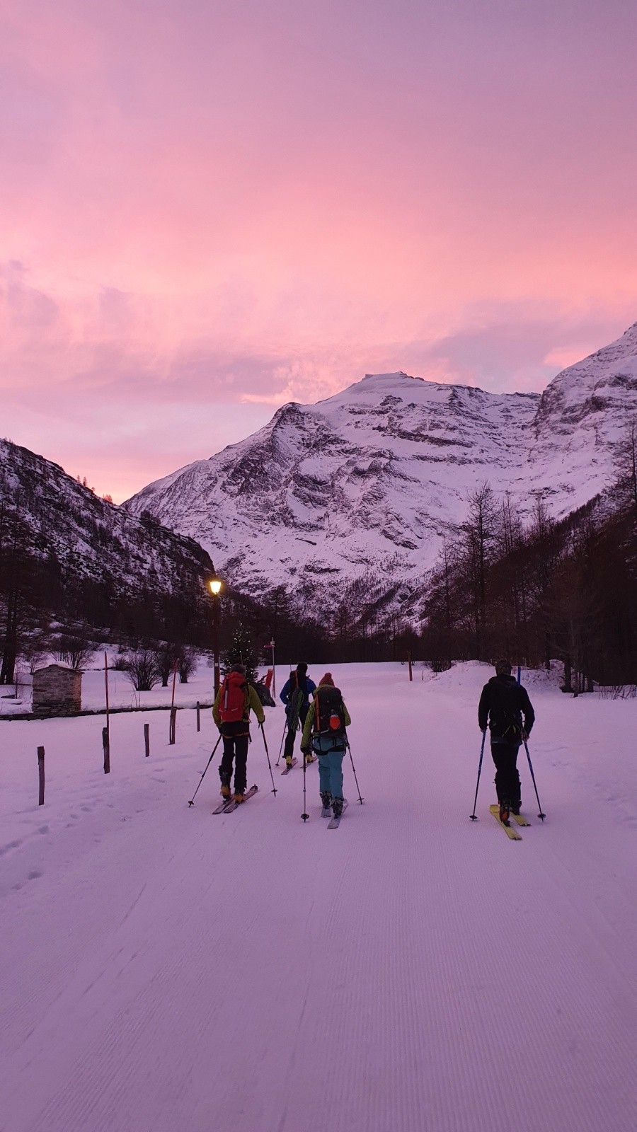 On part tenter l'Albaron sans grandes convictions mais en espérant de la bonne neige en altitude. Départ au levé du jour car Aurélie était revenue de nuit l'an dernier lorsqu'elle l'avait fait. Superbe levé de Soleil après l'interminable plat jusqu'au Vincendières. Arrivées aux chalets de la Buffaz, on se rend compte du cruel manque d'enneigement, heureusement que la pluie a tout tassé pour ne pas toucher les cailloux... On suit l'itinéraire classique jusqu'au pied du glacier et on s'encorde pour s'entraîner aux manips de corde etc. Finalement, l'encordement était nécessaire vu l'état du glacier après cette année catastrophique pour les glaciers dans les Alpes... On entend même un bruit sourd lorsqu'on avance sur le plat avant la rampe. La rampe se monte bien même si le manque de neige est assez impressionnant et que l'on voit parfois la glace vive ou les cailloux. On commence à monter en direction de la corde fixe et de la via ferratta pour accéder au sommet mais la neige ne tiens pas du tout (grains fins) et on marche directement sur les cailloux. On préfère faire demi-tour au lieu de faire des frayeurs inutiles... On reviendra en fin de saison pour le faire à 100% !
