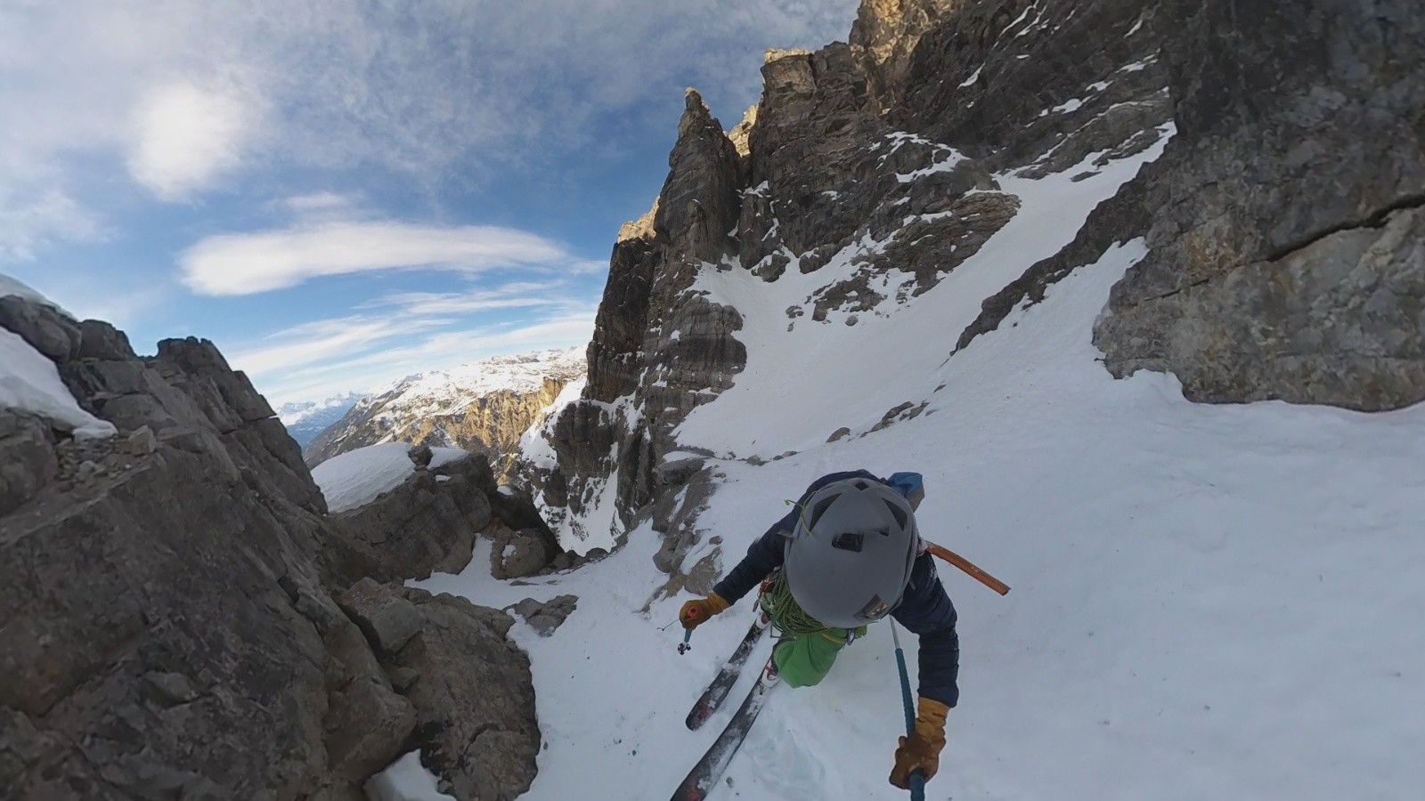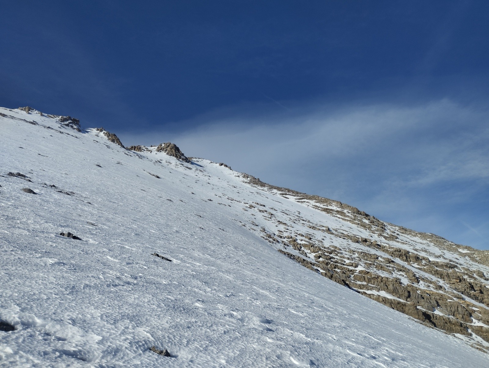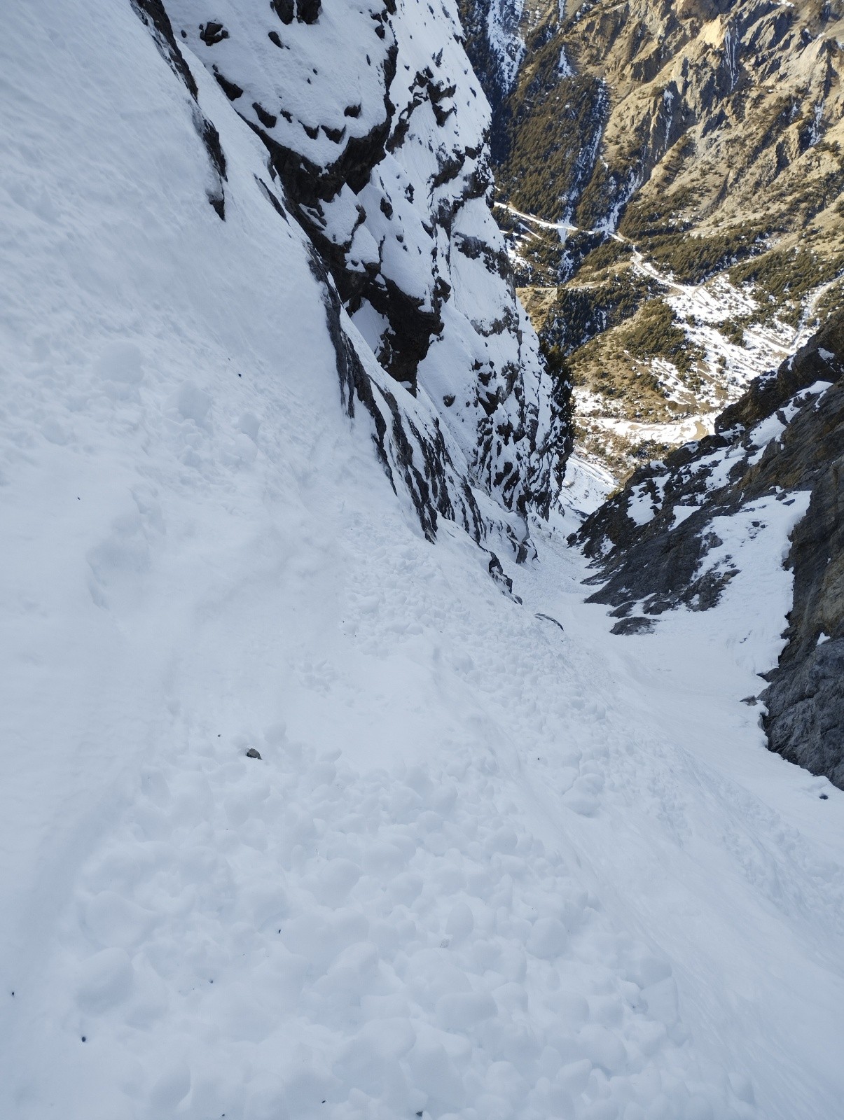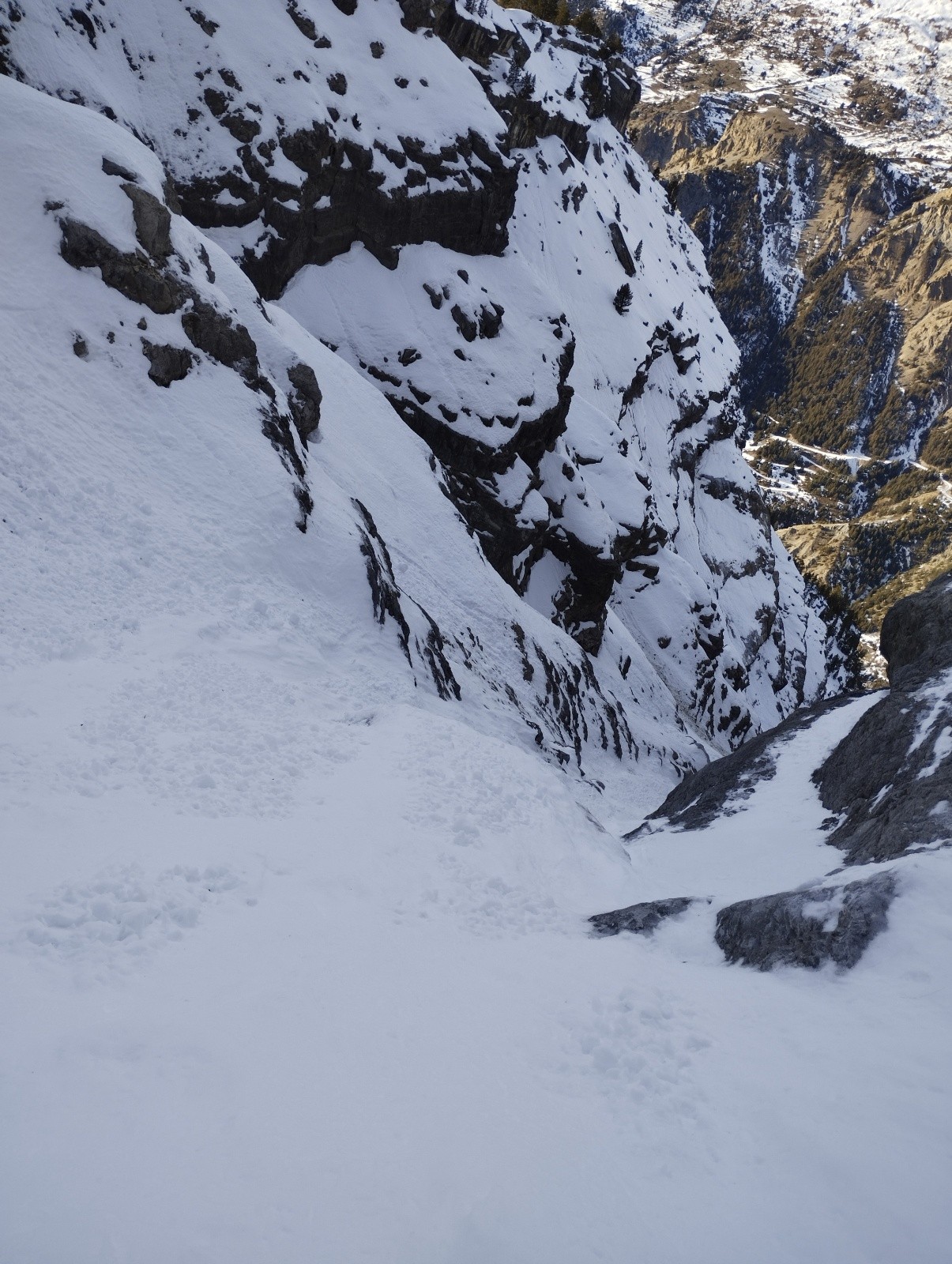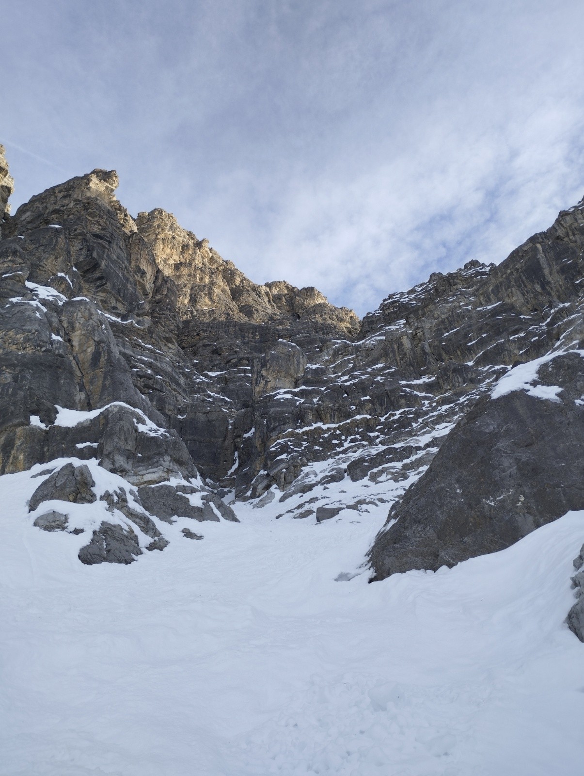 Bon j'avais un peu peur d'affronter la grande barre de 40 m tout seul j'ai donc opté pour la stratégie de monter du côté sud et de redescendre le couloir nord a vu.