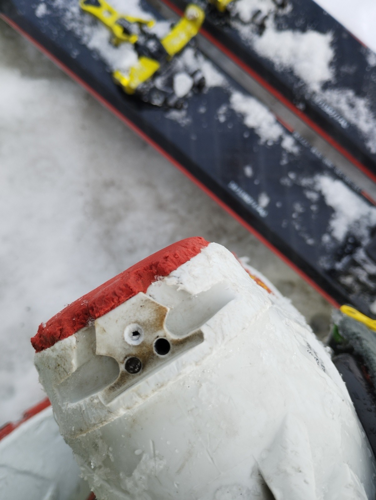 En déchaussant à la voiture en rentrant l'insert arrière d'une de mes chaussures est restait sur la fixation, la vis ainsi qu'un des deux tétons de centrage c'était cassé dans la chaussure (voir photo). Heureusement petit détour par Briançon et pour 35 € mes chaussures ont retrouvé leur jeunesse !