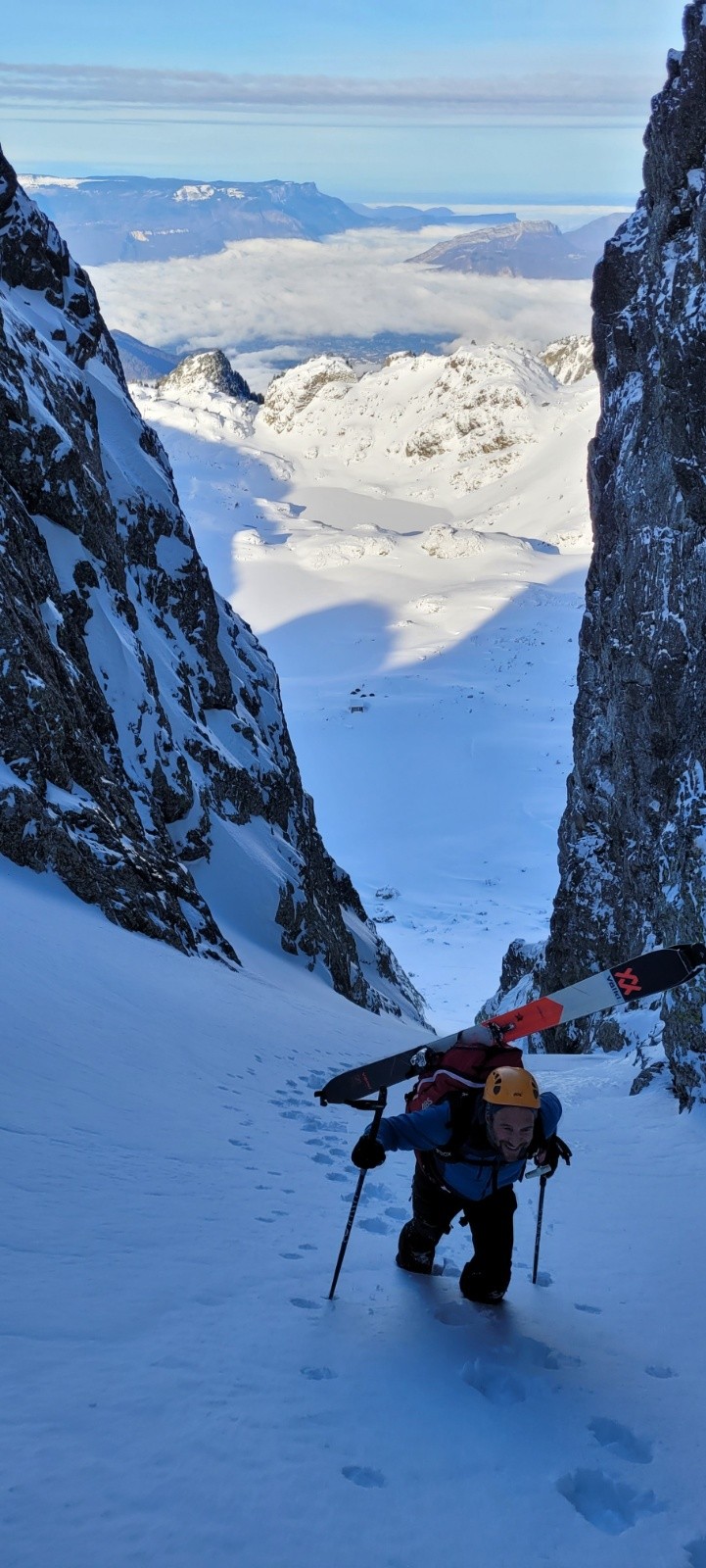 Pas mal de monde dans le coin en cette belle fenêtre météo- nivo. Mais on aura eu la chance d'aller trouver deux chouettes pentes encore vierges miam. Cette petite couenne des Roberts est décidément bien mimi. On s'est arrêté quelques mètres avant le ressaut,la neige redevenant bien dure sur la fin.