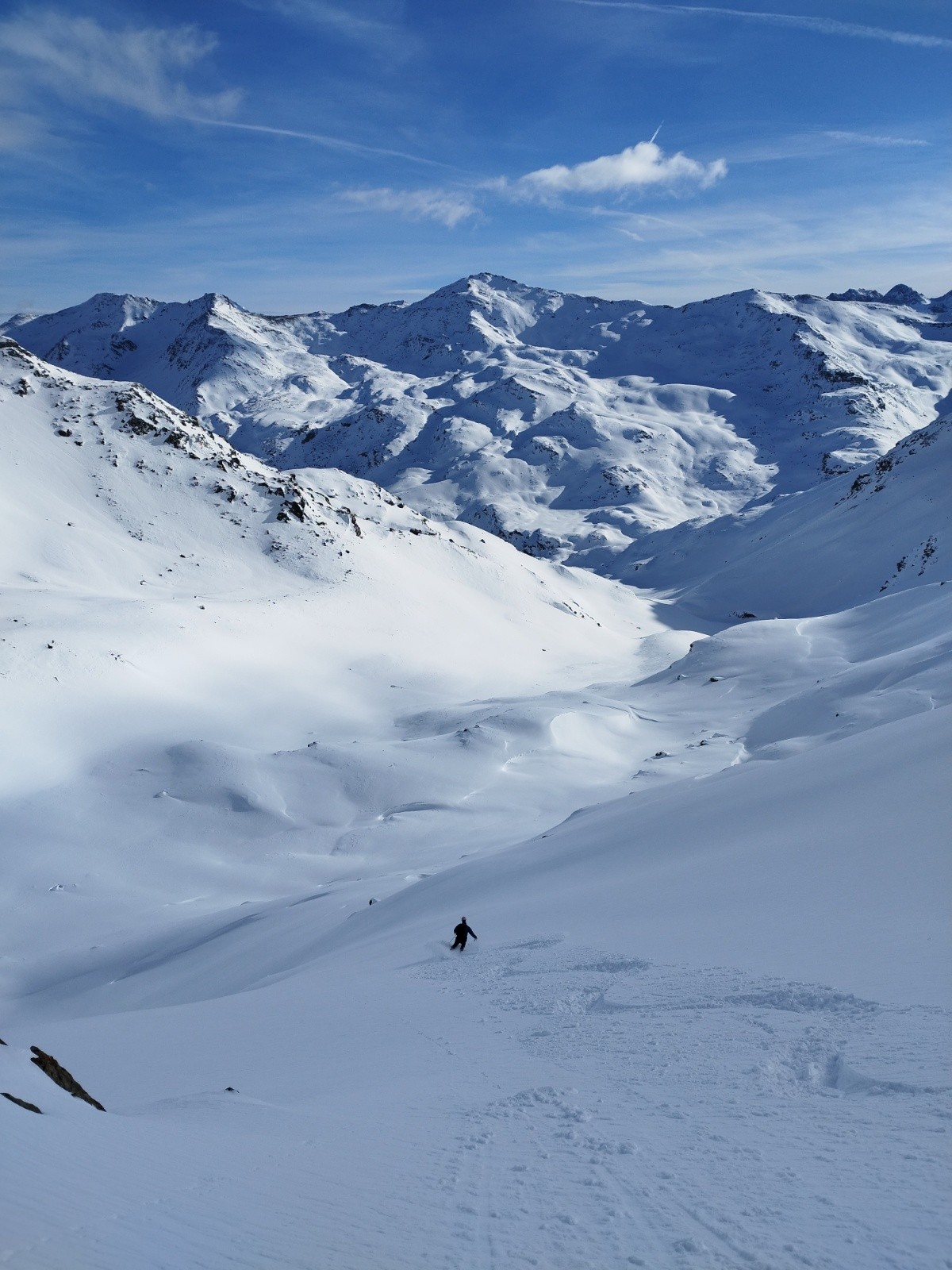 Conditions pour le ski : Poudre froide versant Est du col de la Roche du Lac. Ca s'alourdie en descendant vers le refuge mais la quantité est là, pas une touchette :)