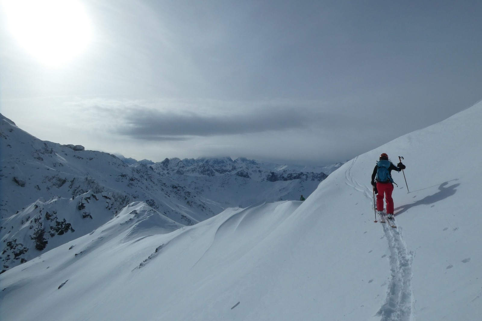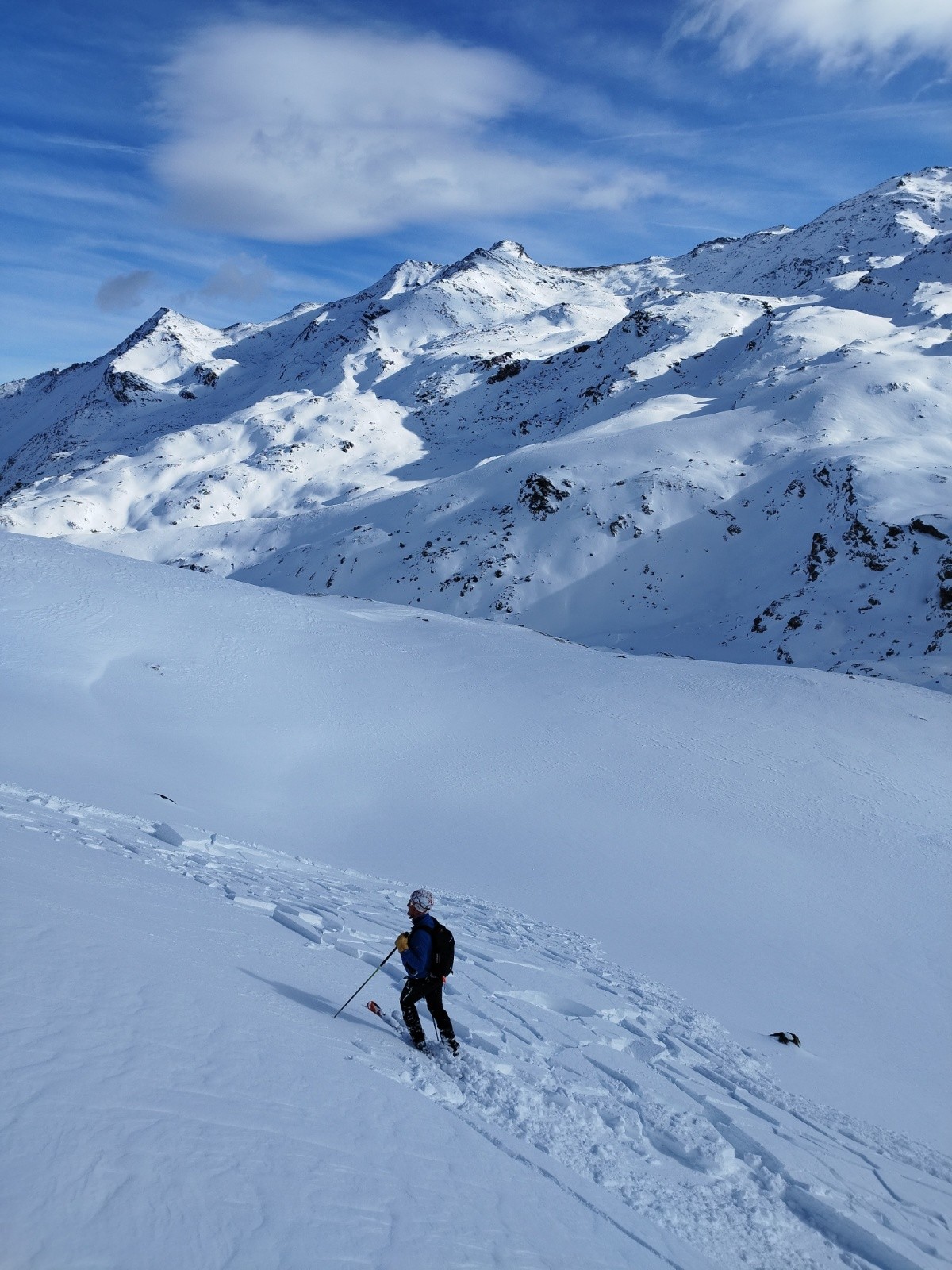 Pas un chat dans le secteur dès que l'on sort de la station. Vue 4 traces de descente côté Ouest du col des Marches.