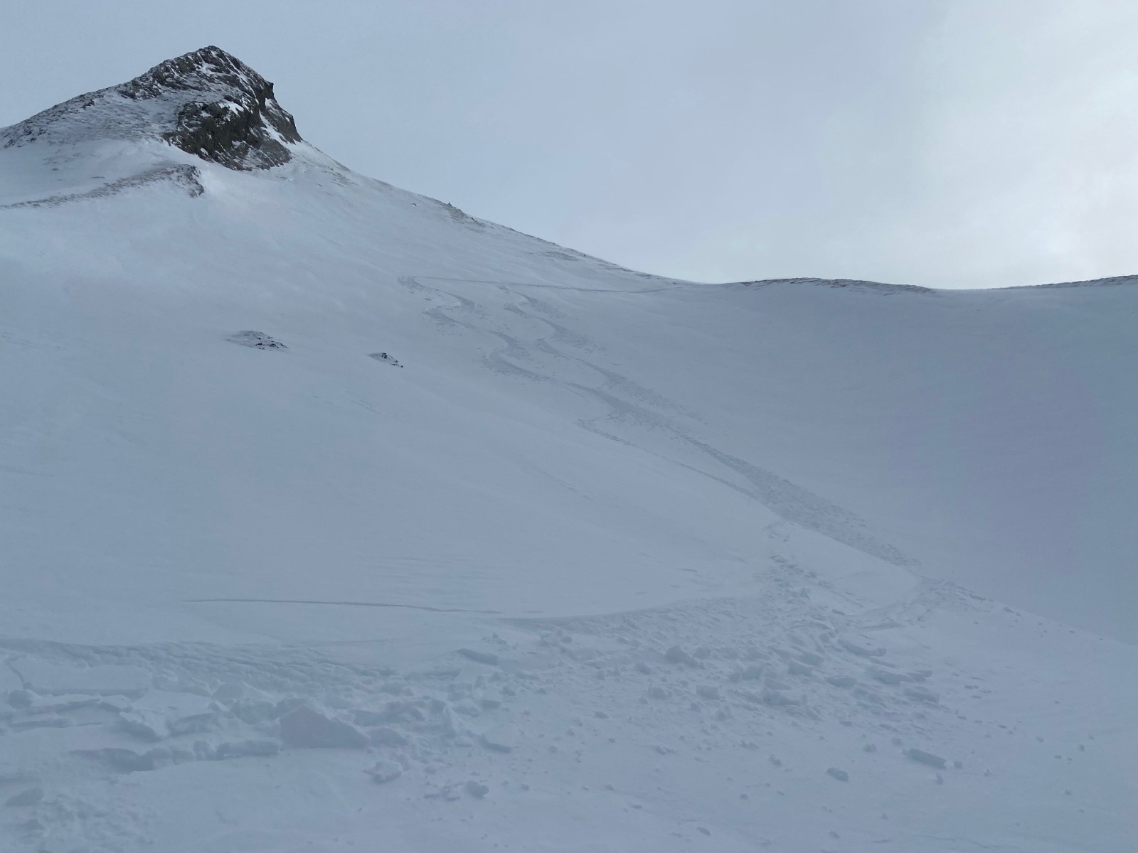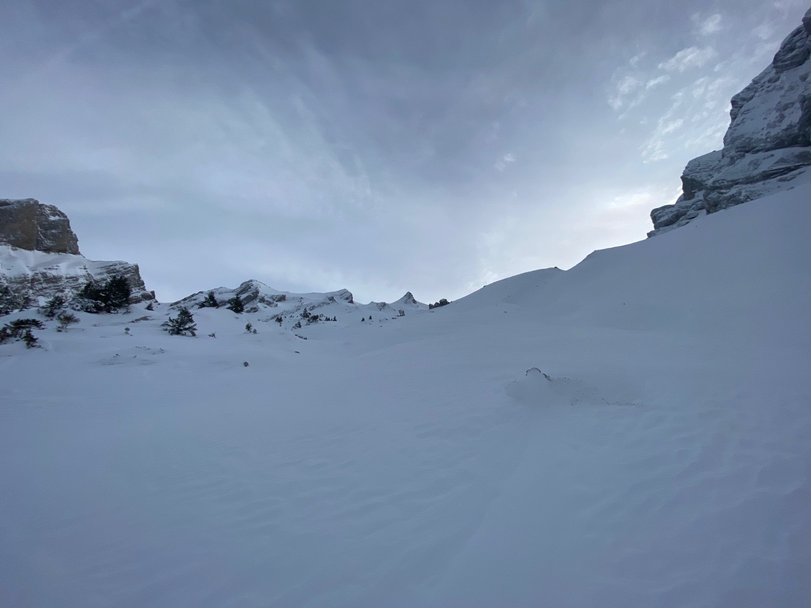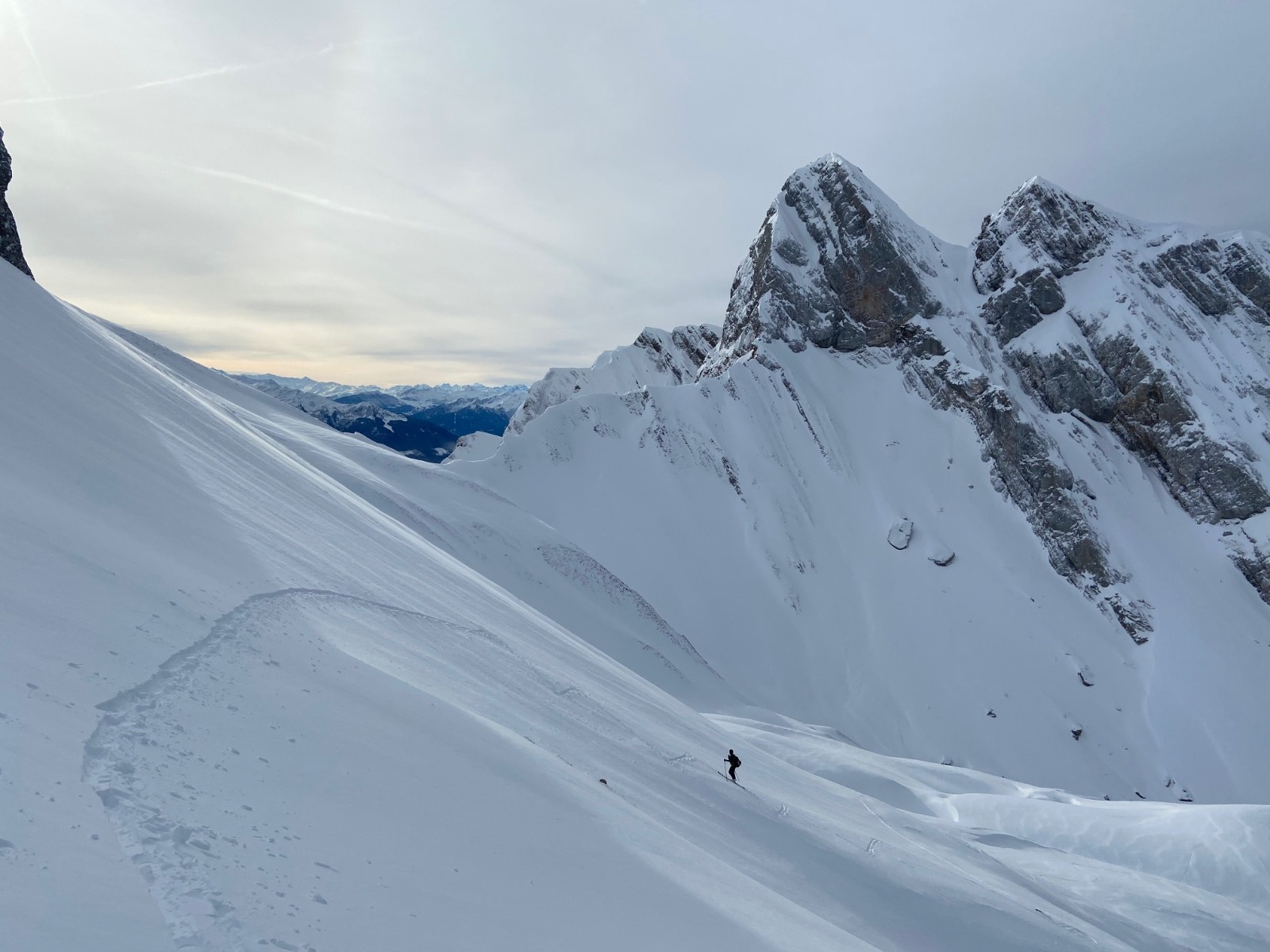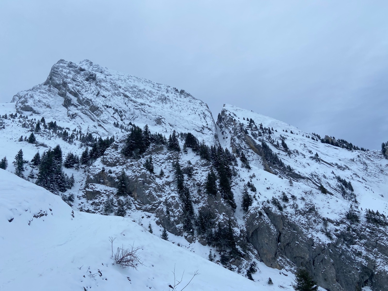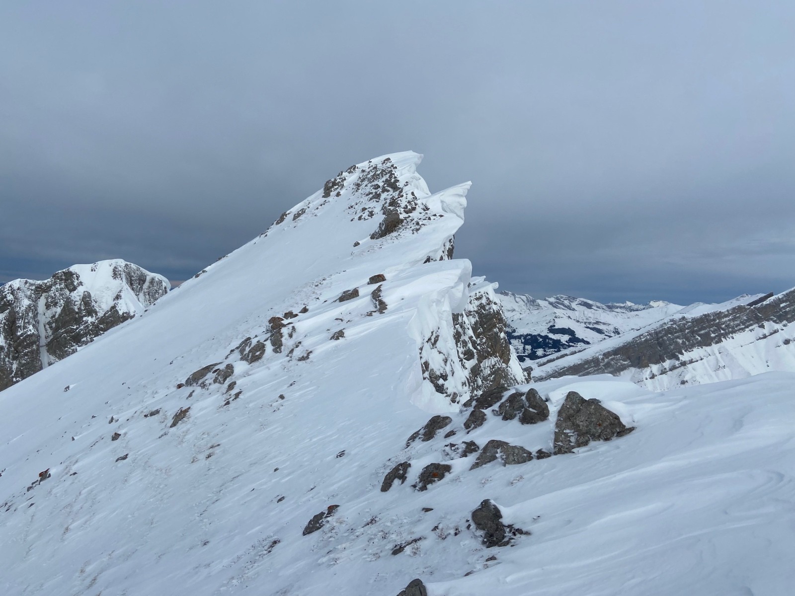 Itinéraire suivi : chemin forestier puis combe de la blonniere , pas de trace après la piste, tout est à faire alors avec Jérôme on trace à tour de rôle au mieux sur les croupes. A partir de 2000, le vent se met à bien souffler, on en prend plein la tête. On mets de la distance de sécurité sur les dernières pentes un peu plus raide et bien charger et nous voilà au sommet. On en prend plein la vue avec de multiples corniches et la vue à 360 mais le vent ne nous invite pas à passer à table du coup on décide de descendre illico, les premières pentes jusqu’à 1700 sont excellentes 🤩 puis on arrive dans une neige qui s’est vite alourdie par rapport au matin, cela entraîne un petit déclenchement de plaque sur une petite contre pente lors d’une traversée, rien de bien méchant, puis on fini dans un champ de requin, le chemin est difficilement skiable, on décide de déchausser à la moitié pour éviter de ruiner les skis.