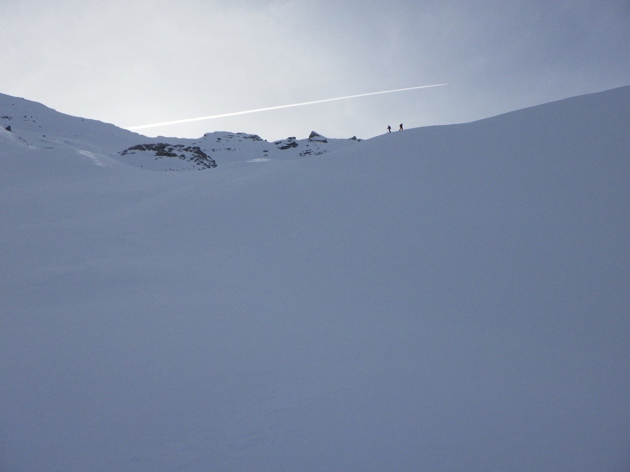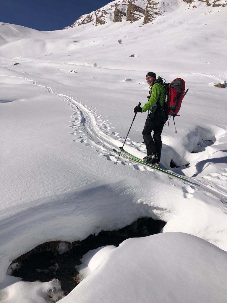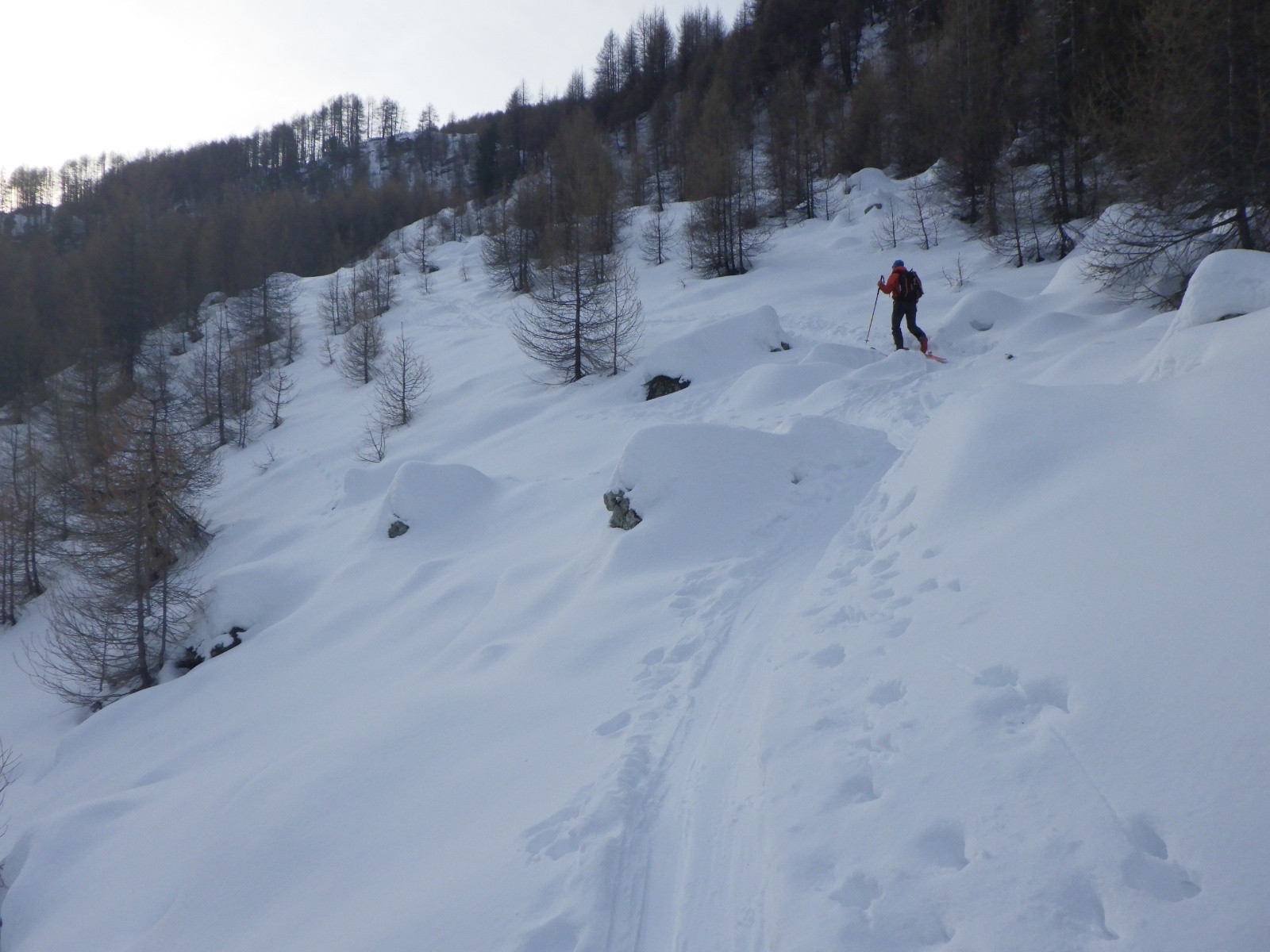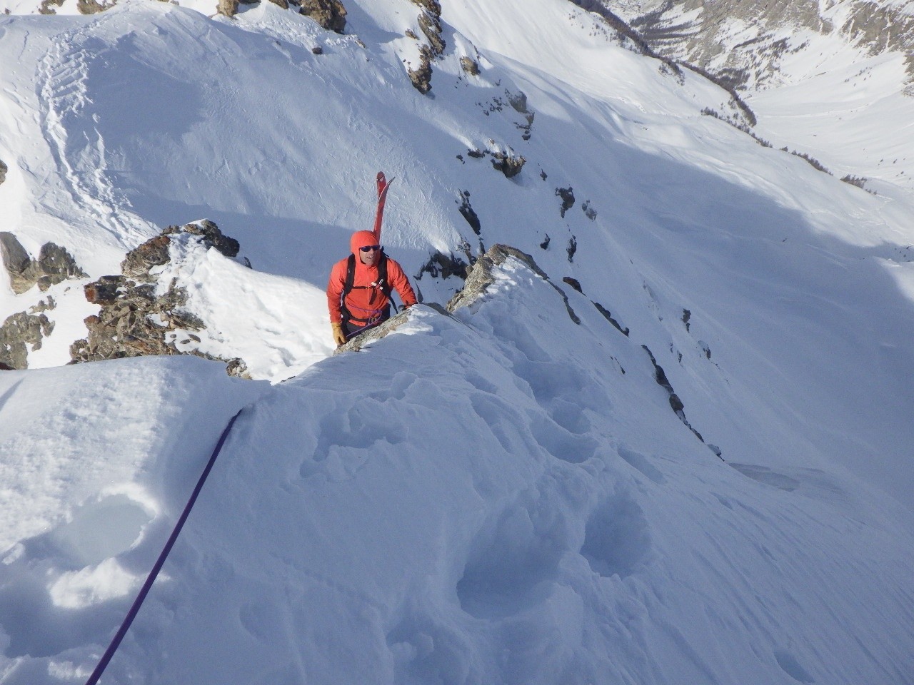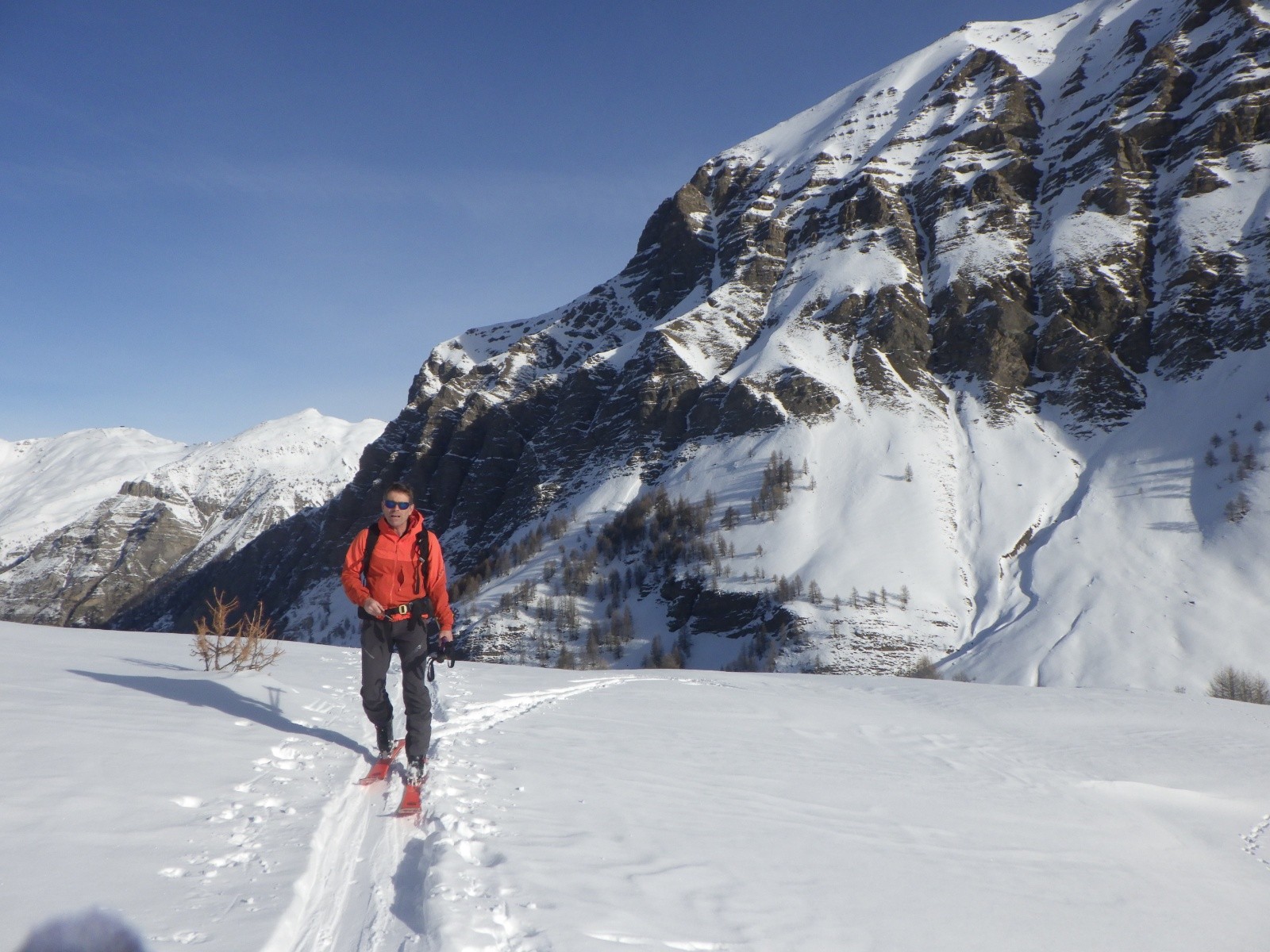 Itinéraire suivi :La Chalp, cascade des Razis, cabane du Gouron, cabane de Font les filles, cabane des Ecuelles, pente ouest montagne des Razis, arête grand Parpaillon, descente nord dans les combes jusqu' a la route du parpaillon, descente par la route et les pistes de fond.