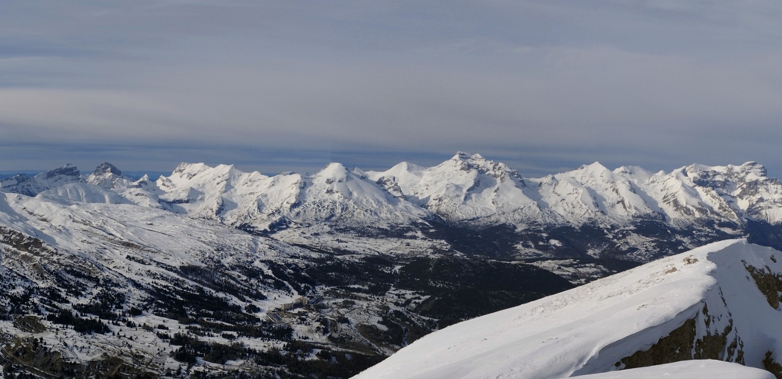 Le vent a beaucoup travaillé, seul les fonds de vallon et la large crête du Raz de Bec sont correctement enneigés