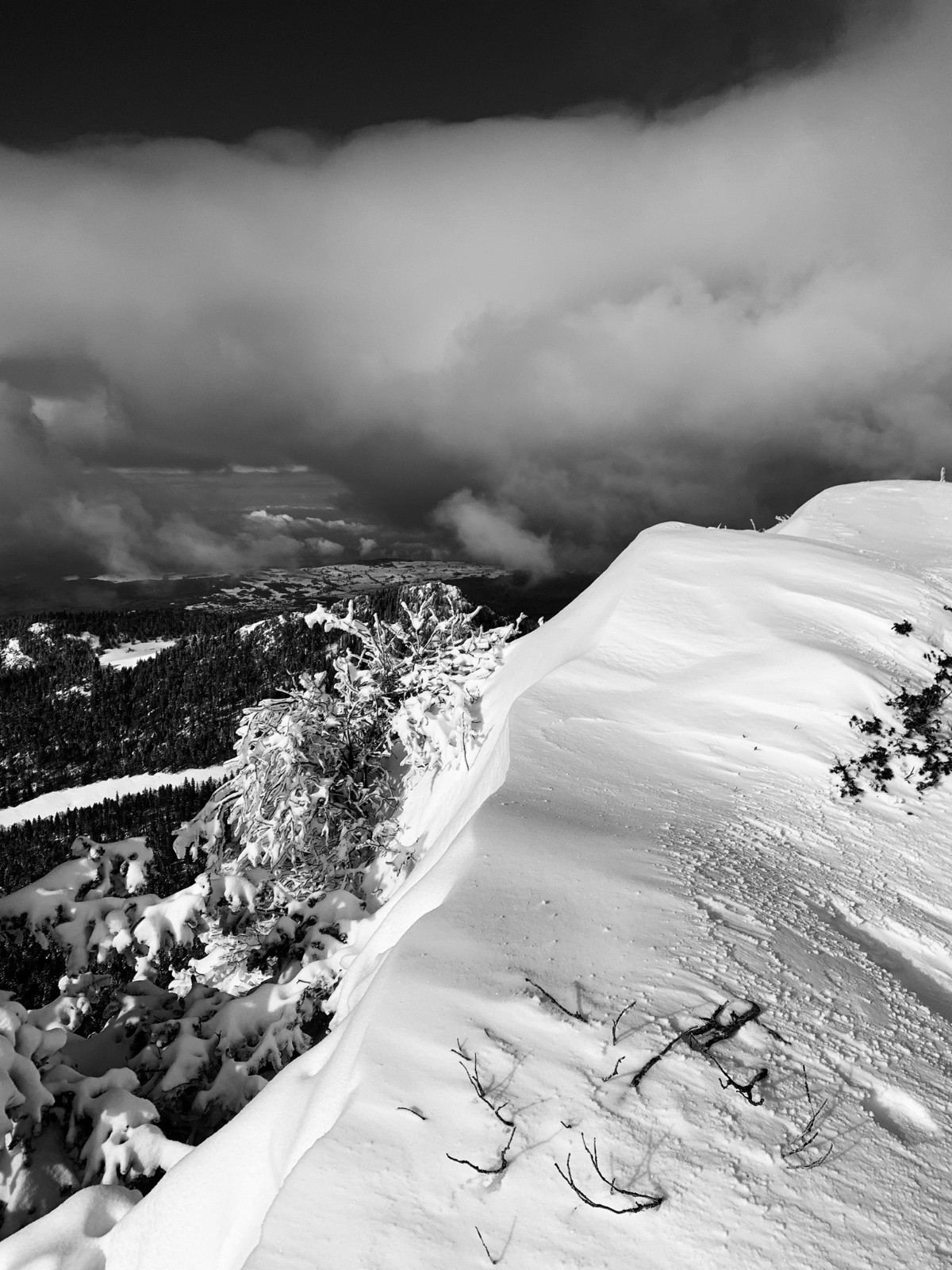 Nous avons ouïe lire qu'en Chartreuse en ce moment, la neige y était si fine et légère qu'il suffisait de la respirer pour monter au 7e ciel, ce qui nous aurait ma fois, bien aidé pour atteindre les sommets...