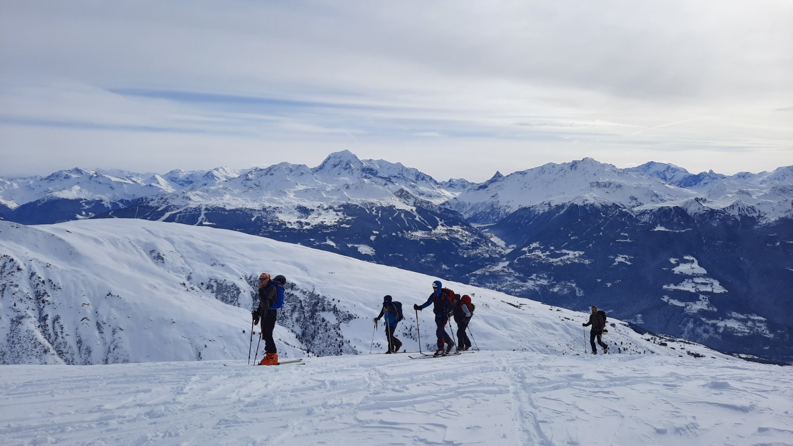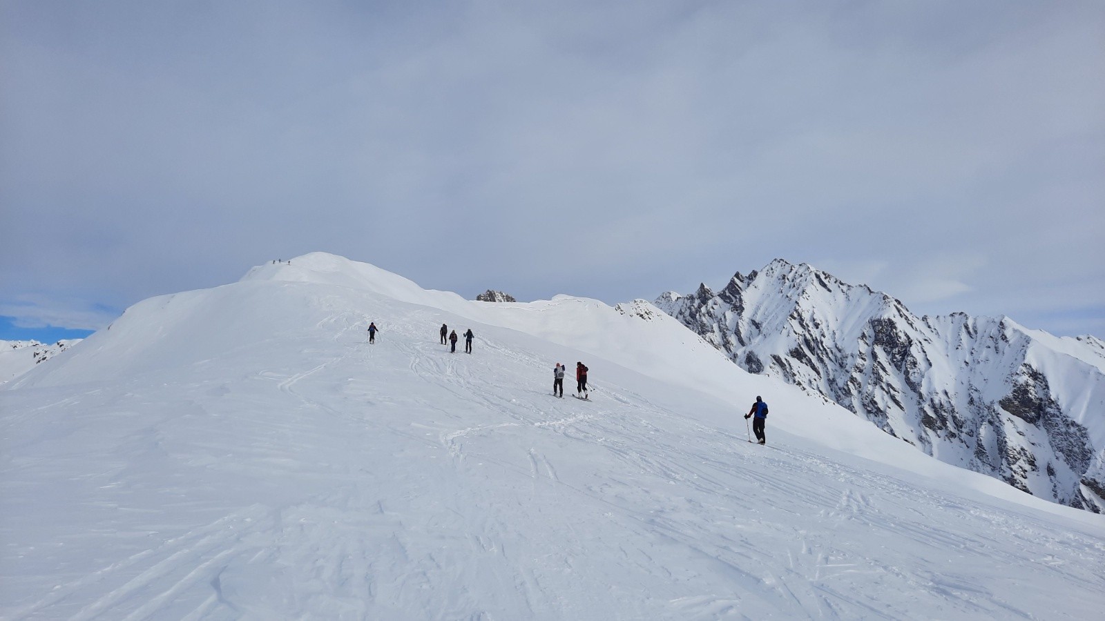 Sortie du groupe Initiation du CAF Lyon Villeurbanne (9 participant·es et 2 encadrants), en remplacement de la pointe de la Combe Bénite réquisitionnée pour une course de ski-alpinisme.