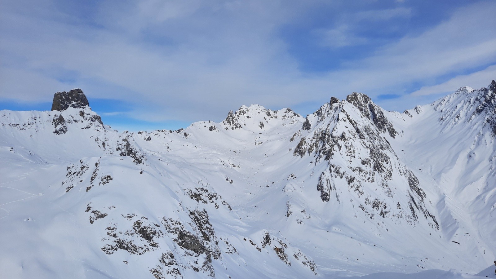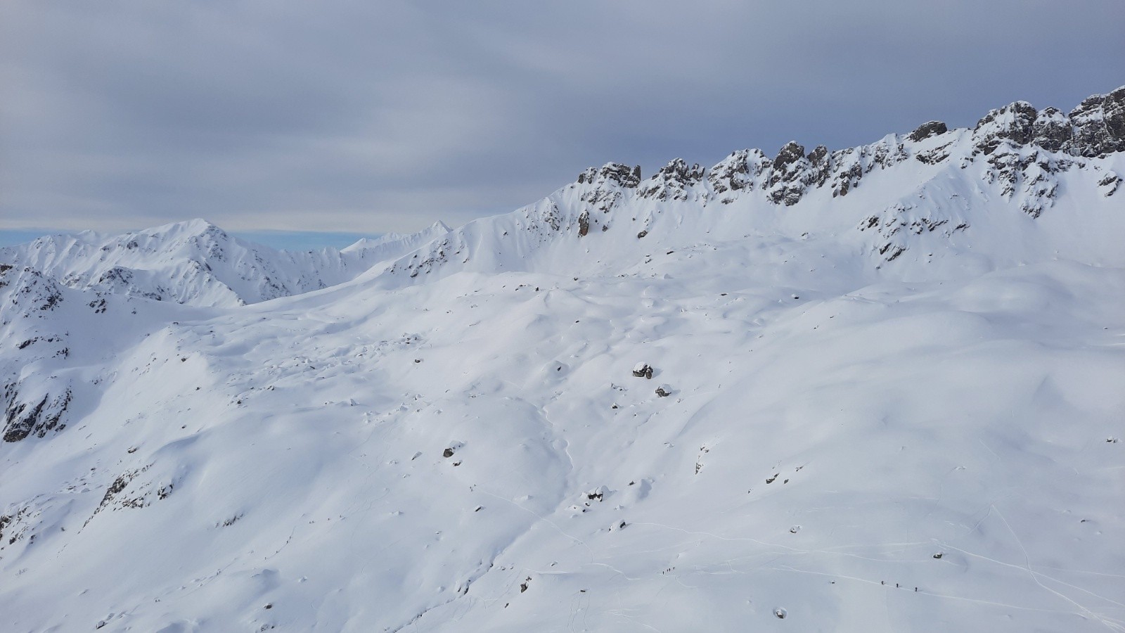 Activité avalancheuse : une plaque déjà partie en face est du Mont Rosset vers 2300m.
