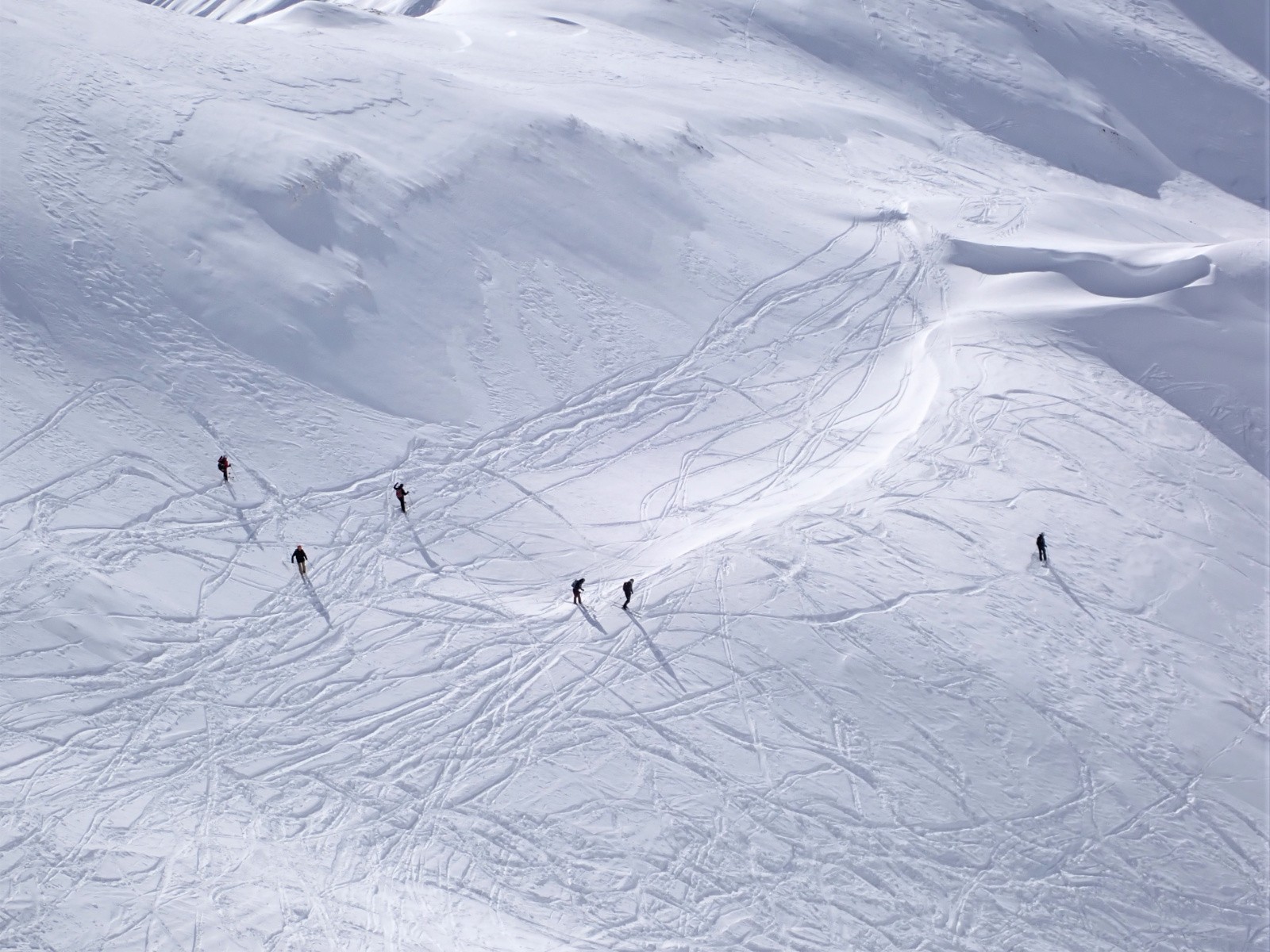 Conditions pour le ski : neige restée froide dans la totalité de la combe.