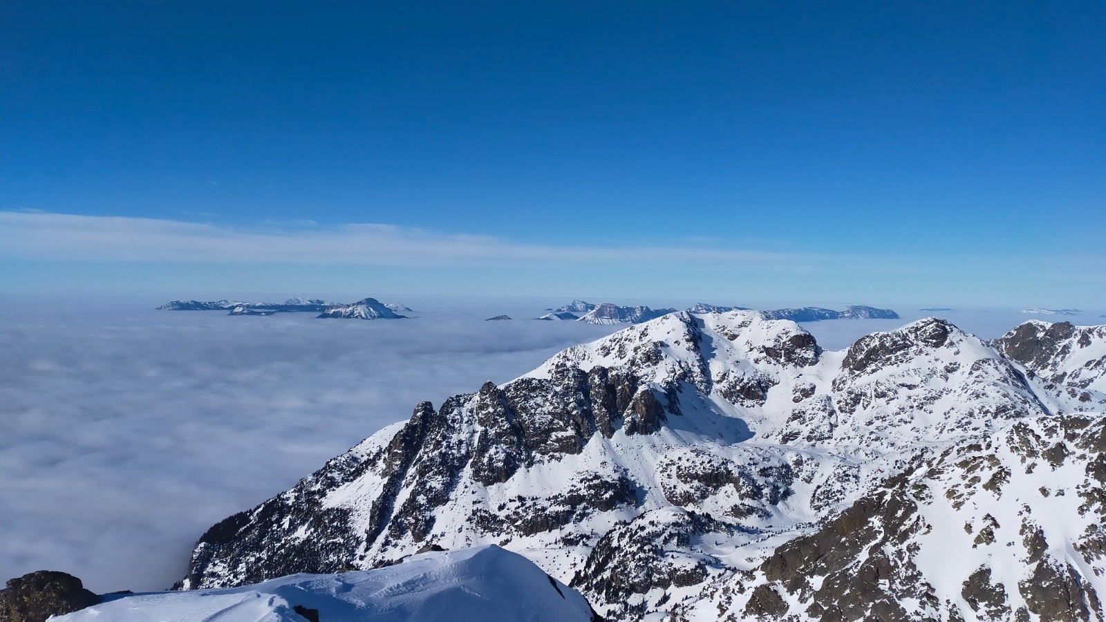 Météo/températures : Grand soleil au dessus de la mer de nuages à 1500m, températures fraiches sans excès (-5 au départ et arrivée à 10h et à 15h30) et sans vent.