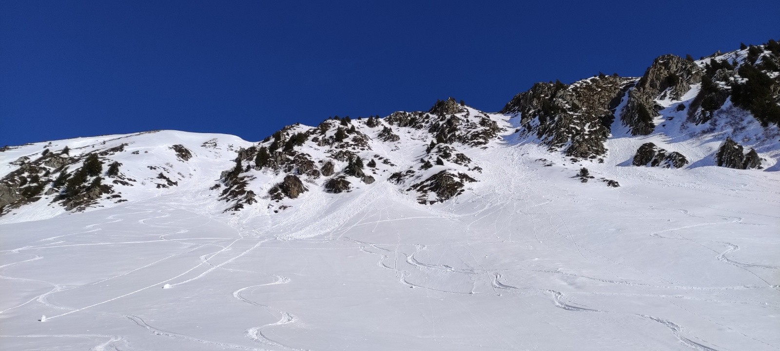 Activité avalancheuse :des plaques parties sous le rognolet plus une traversée de blocs au dessus de l'embranchement direction refuge des fées