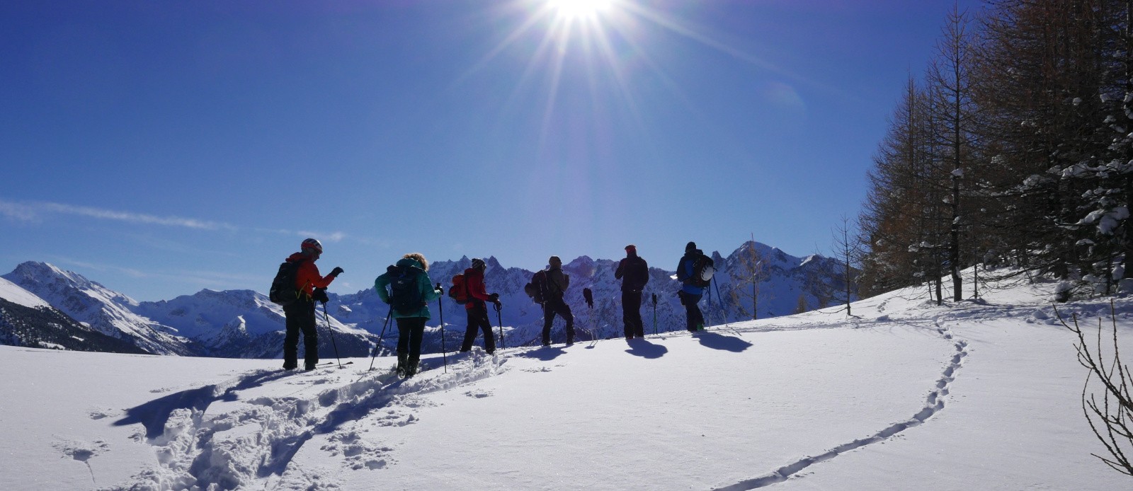 Sortie du CAF du Guillestrois et du Queyras. Beaucoup de monde vers le col de Bramousse. Des copains partout, pour profiter de cette superbe neige.