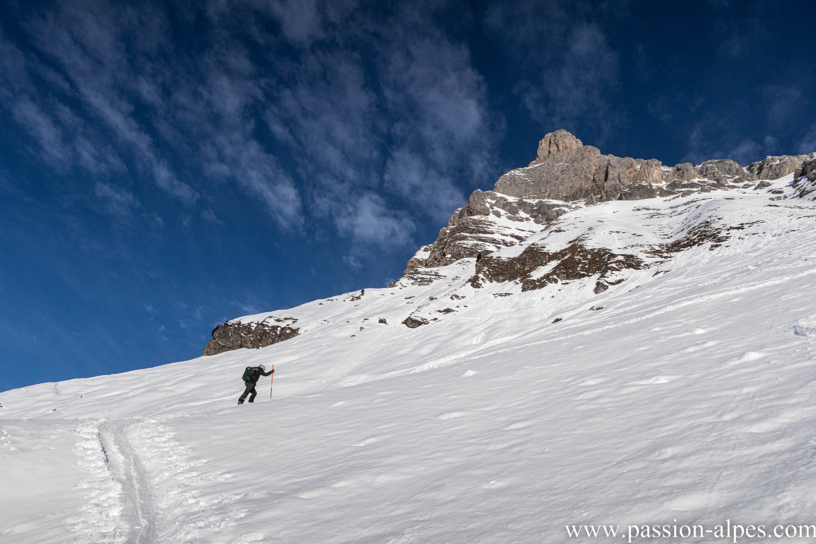 L'heure qui tournait, la charge mentale de gérer cette montée raide dans ces conditions, et les conditions de neige ont bien failli me faire signer le but ! Mais Marie-Pierre s'est bien battue et nous sommes arrivés au col "sans encombres"