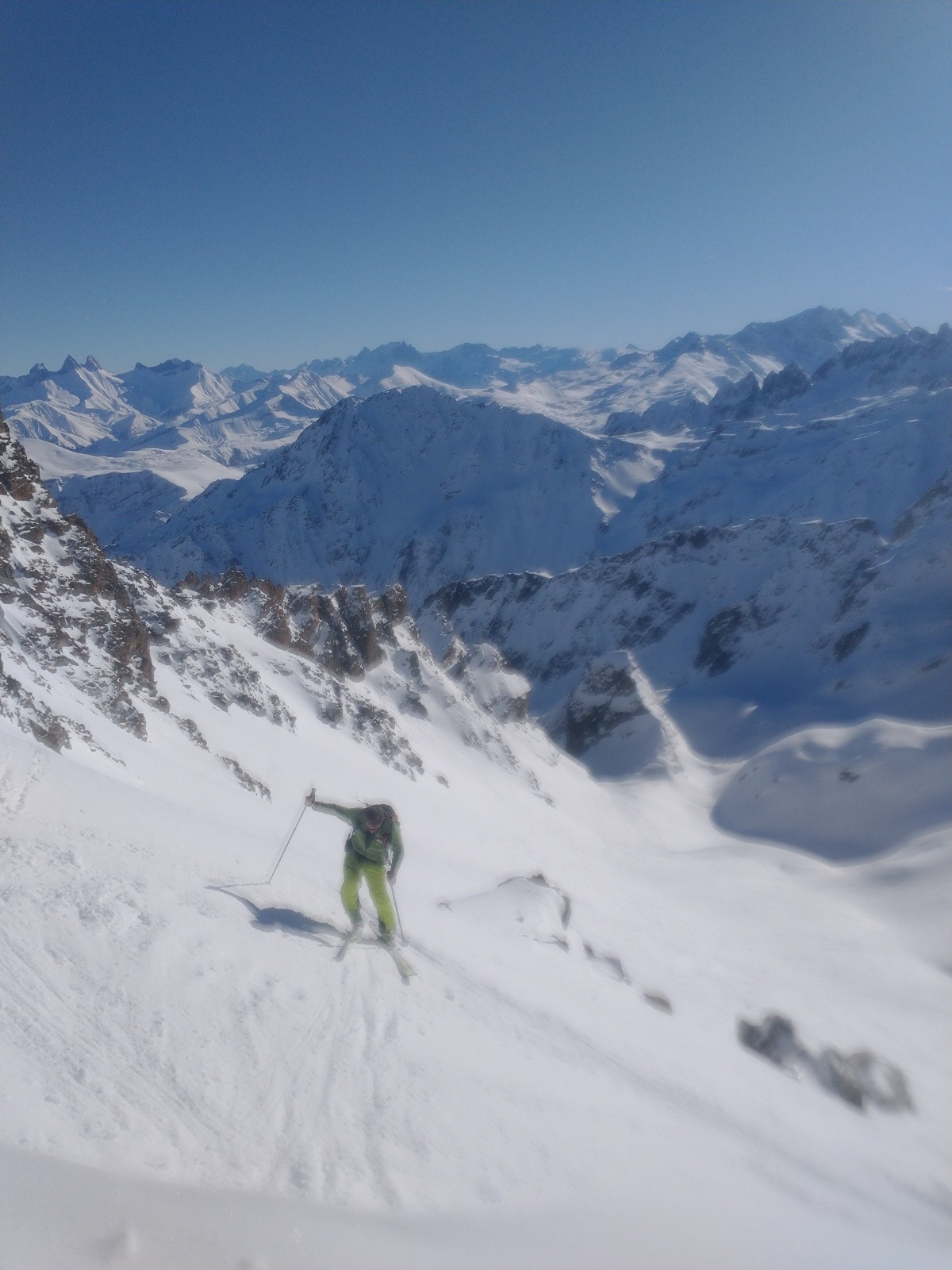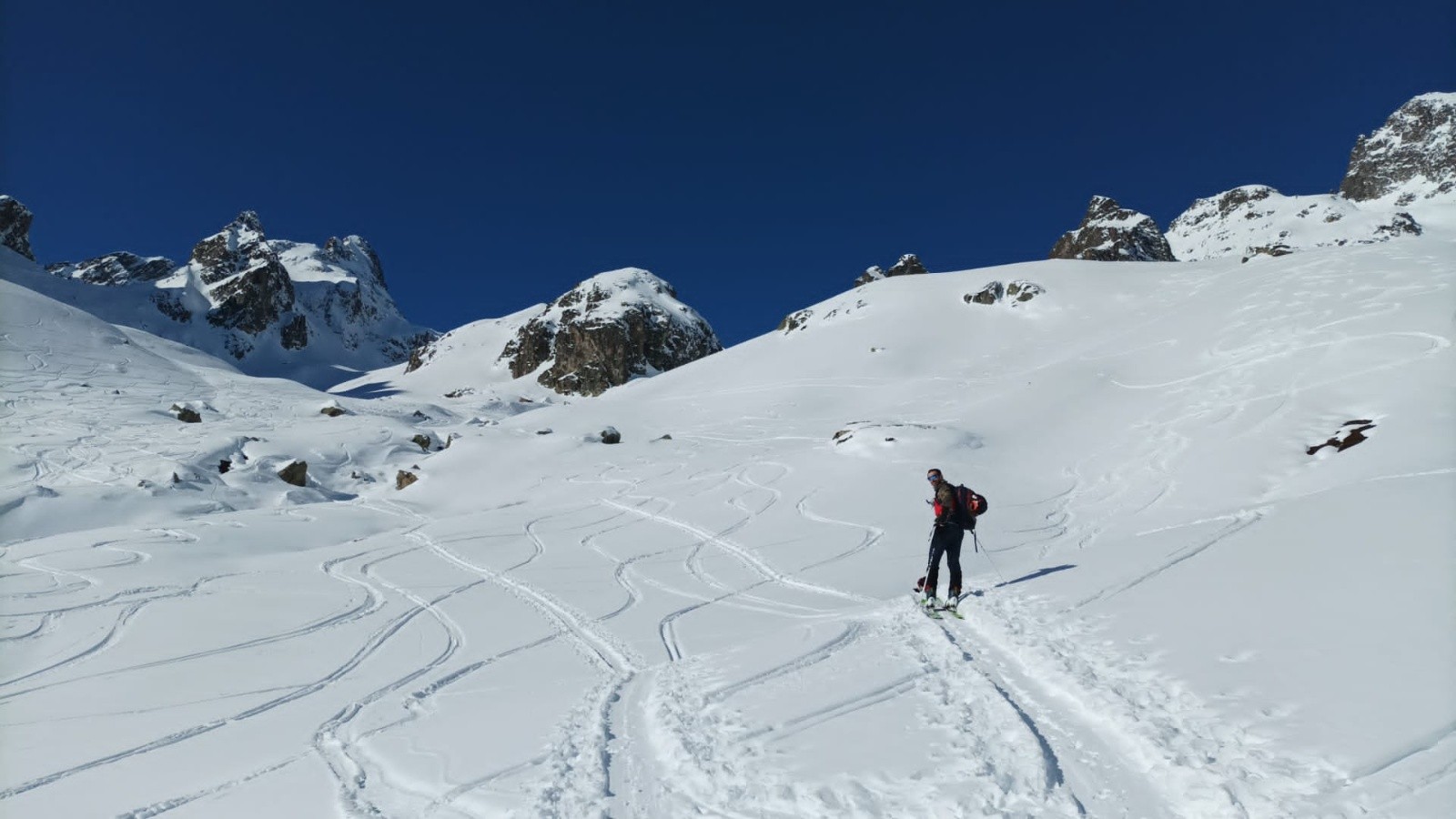 Itinéraire suivi :aller retour même itinéraire combe de tepey . Bon dégel a la descente sur partie compact ,le haut du col pas top a skier neige changante, après le passage entre les deux rochers bon ski alternant poudre fraîche et légère, moquette et neige poudreuse un peu humide mais bonne a skier . Globalement bon ski ,avec du 88 au patin ,je garantie pas la même chose avec deux allumettes au pieds 😂