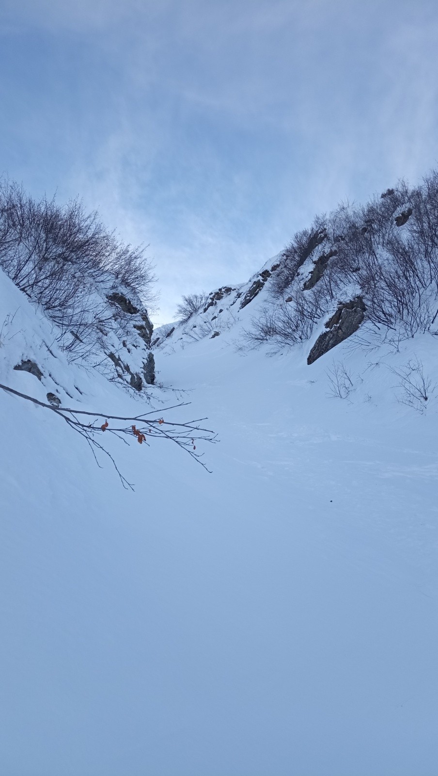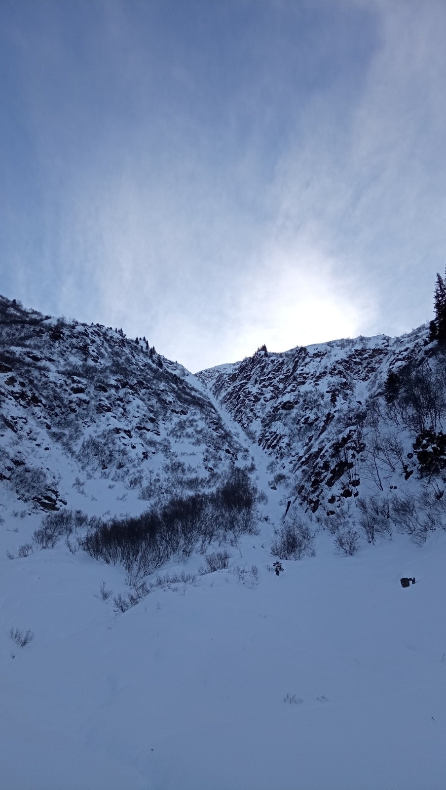 Descente par couloir le nant de la colombe, skiable mais neige purgée dure, sans intérêt passé 1400m