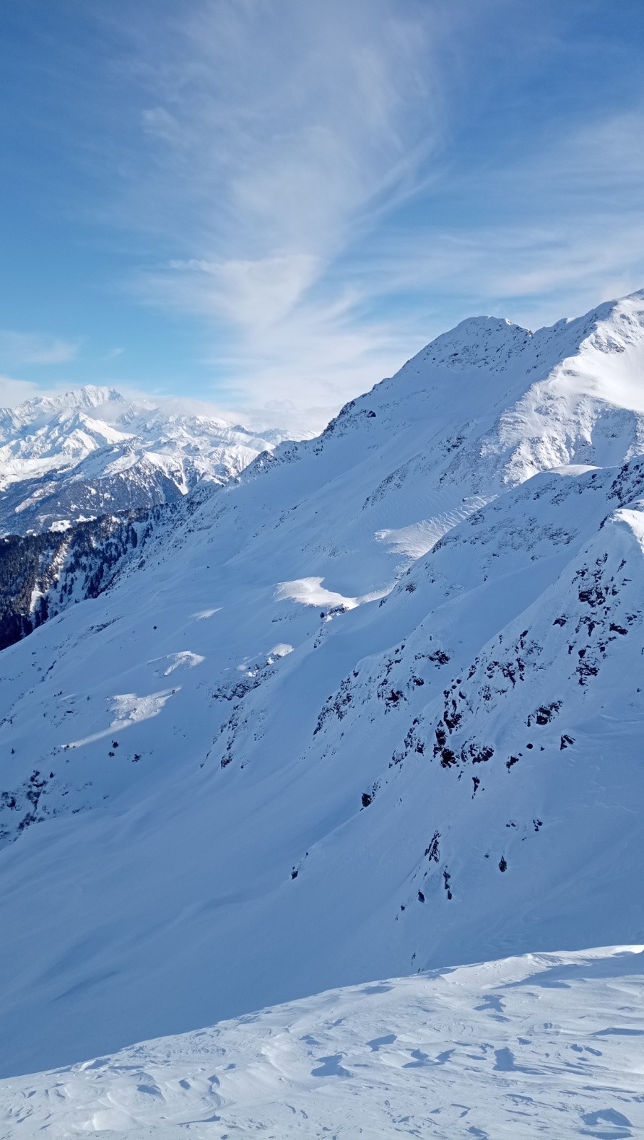 Activité avalancheuse : ⚠️plaque friables visible dans les zones d'accumulation par le vent