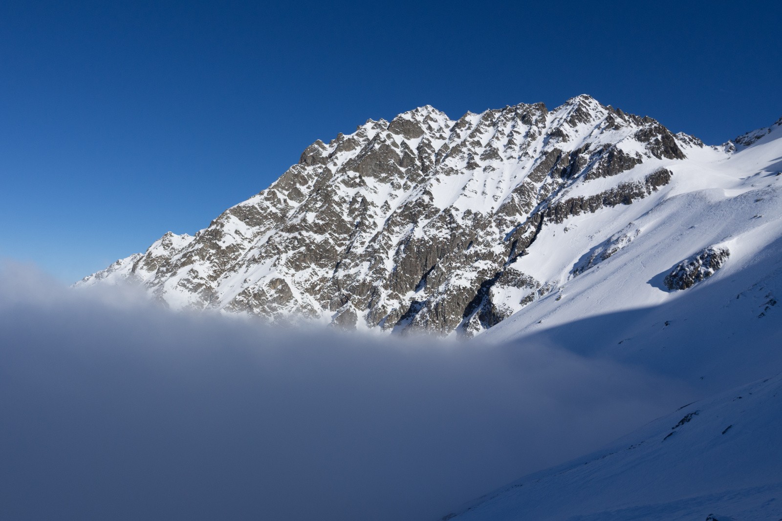 Conditions pour le ski : Correcte, pas de sous couche sous 1500m ça touche sous la poudreuse. Dans le couloir neige froide et dure, croute, poudreuse, glace (reste de coulées)... bref bien variable tout ça !