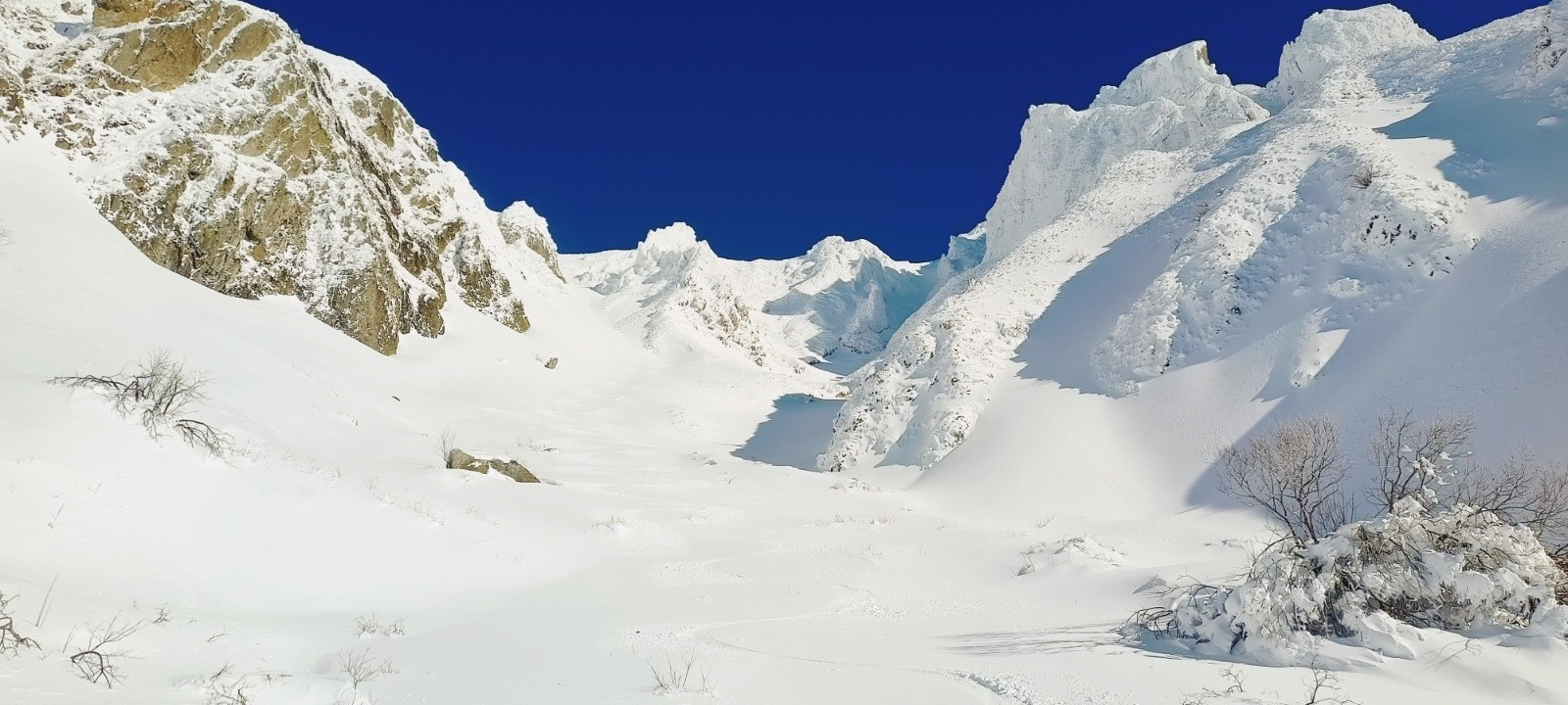 - Couloir du Pas de l'Âne SW : très bon, bonne petite poudreuse, attention au niveau du verrou au milieu du couloir, c'est complètement glacée, crampon de rigueur pour le passer.