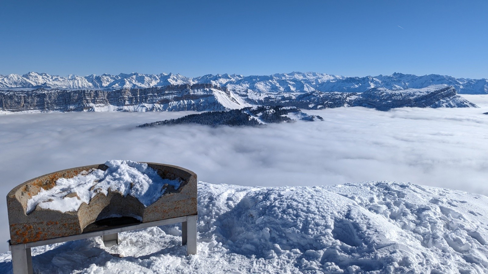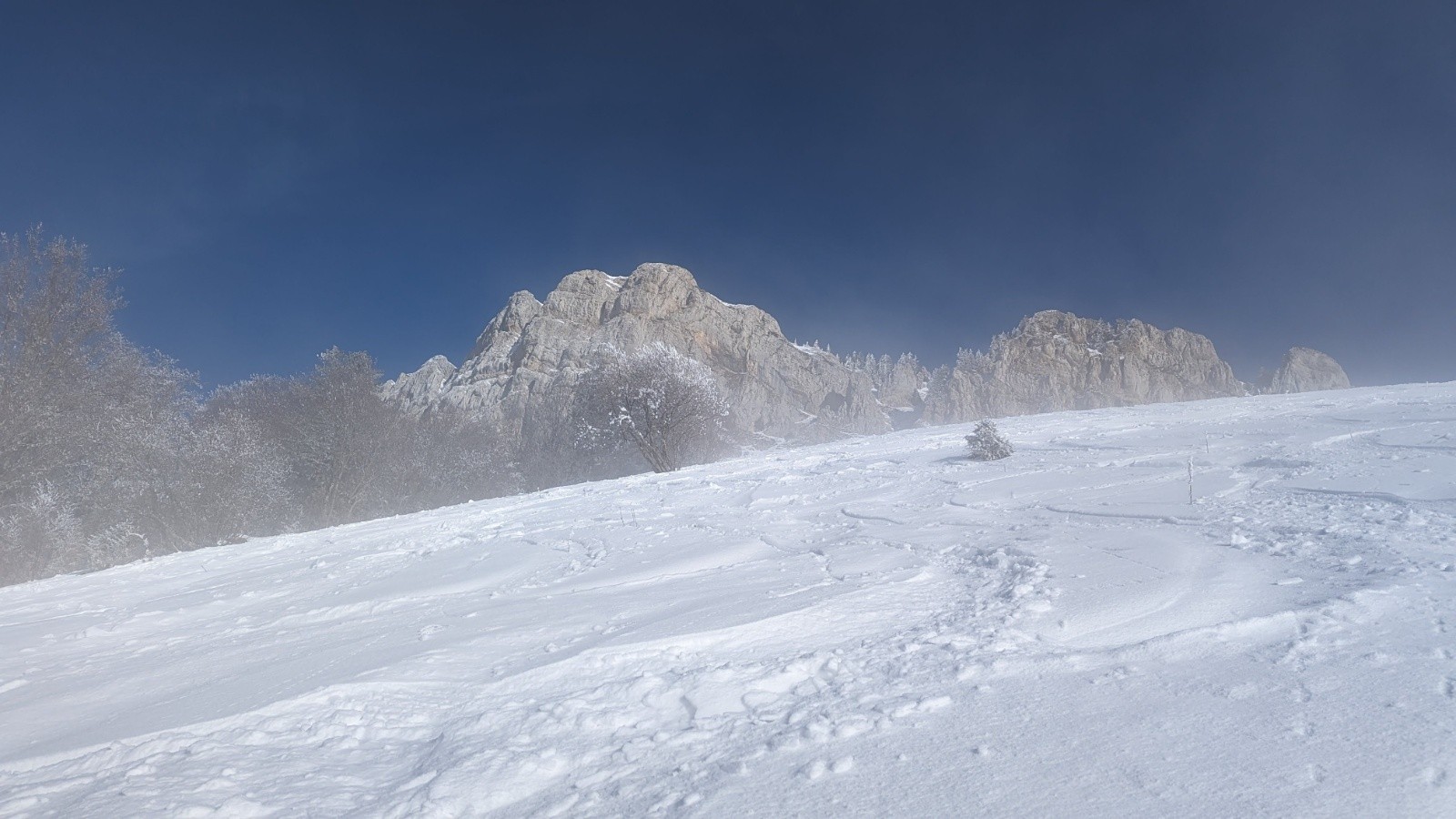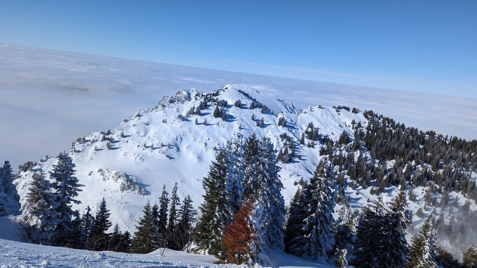 Une belle sortie en Chartreuse avec un superbe soleil. De jolies rencontres aussi avec une skieuse très sympathique qui bifurquait vers la Ruchère (au plaisir de se recroiser), un groupe de lyonnais en raquettes aussi. Une belle journée au-dessus des nuages.