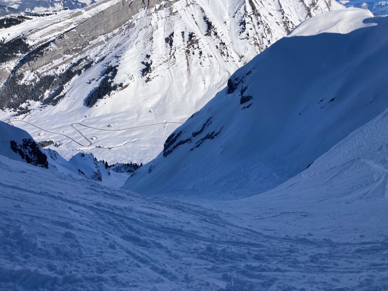 Neige un peu plus lourde et trafollée toujours. Dans le dernier rétrécissement 30/35º, trafollé (encore !).