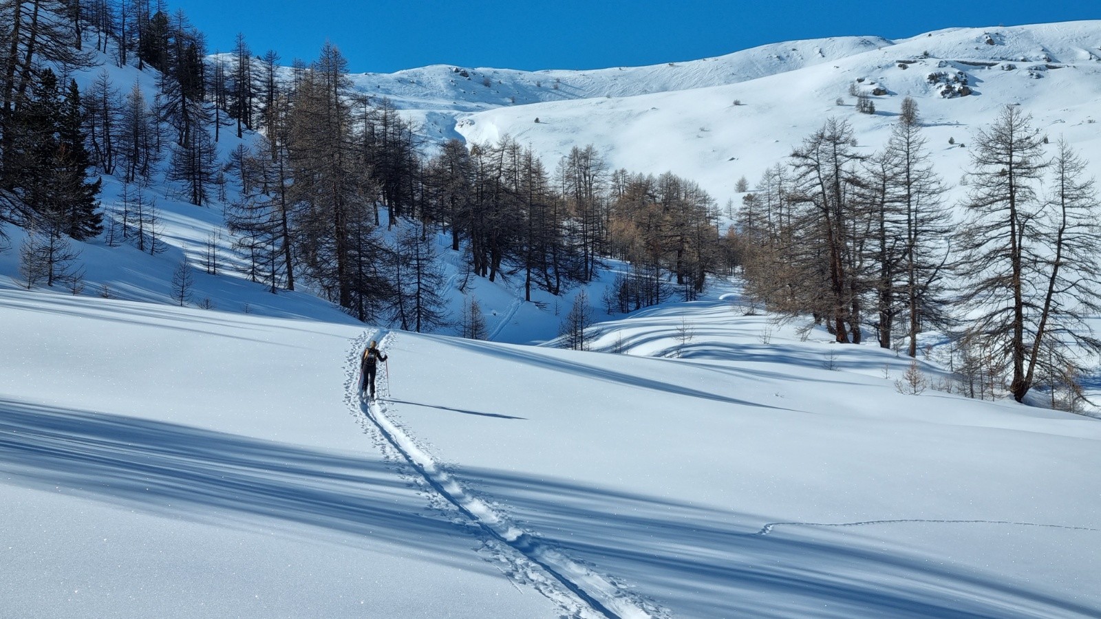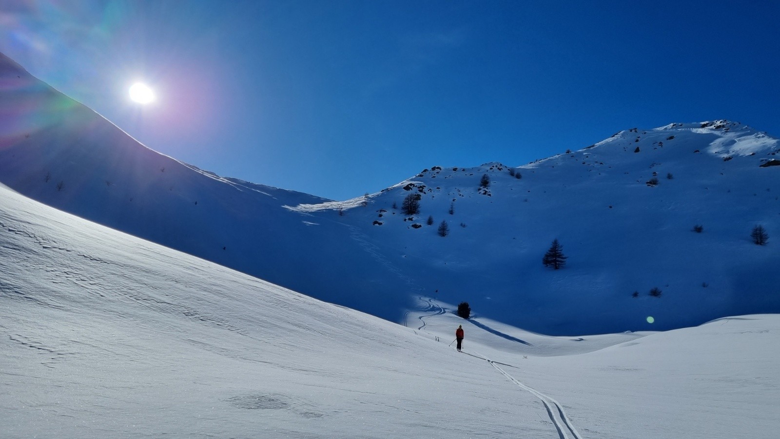 Conditions pour le ski :Conditions exceptionnelles dans les versants froids avec une poudreuse de cinéma, quelques plaques de neige dure au passage des cols ou sur les crêtes