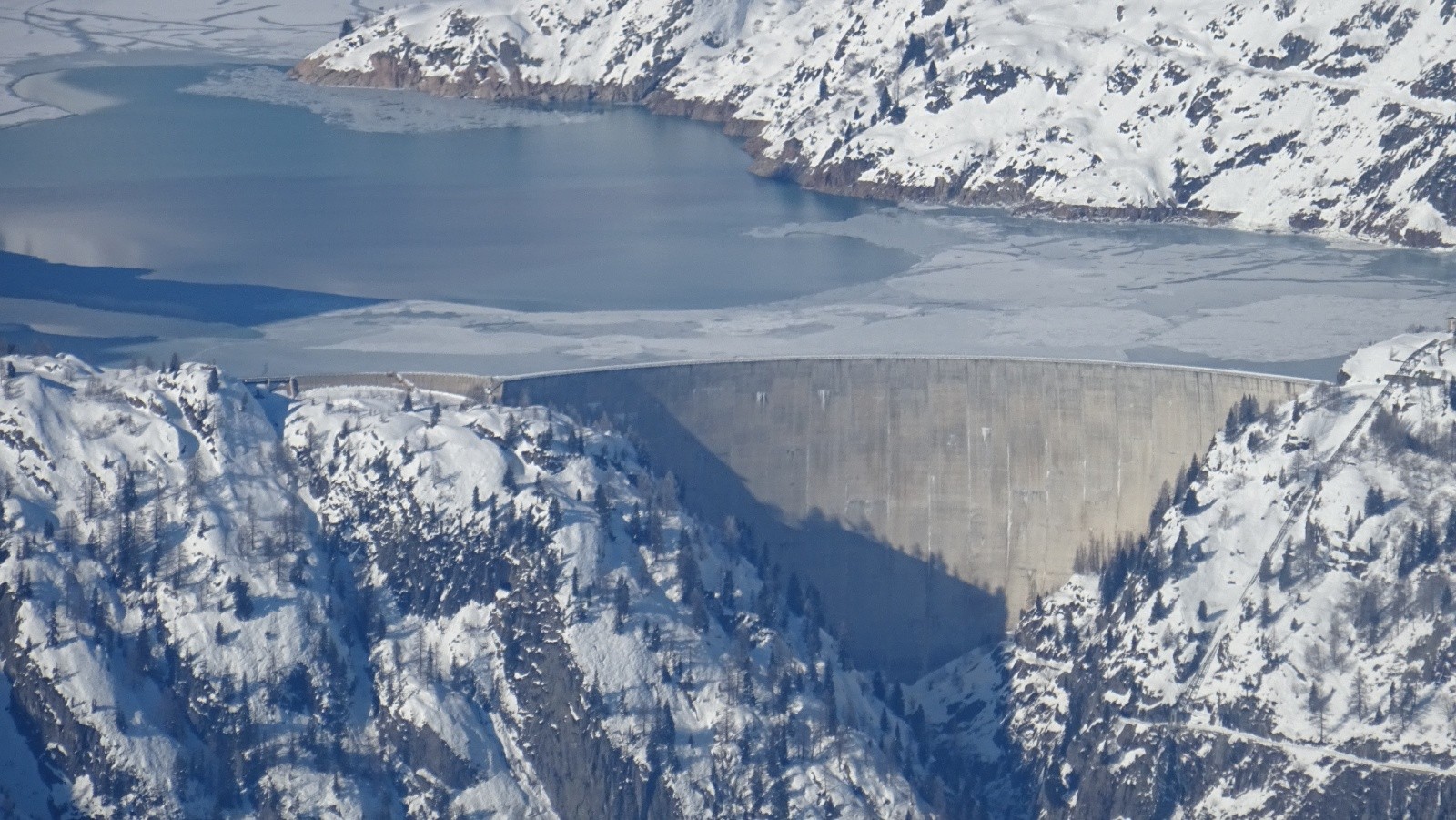 Barrage d'Emosson pas encore gelé malgré le froid....