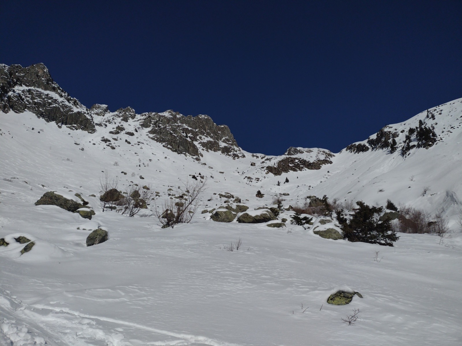 Conditions pour le ski : Globalement correcte. Le passage dans la forêt en descente est un peu perilleux pour les skis à cause des cailloux. En haut la neige ressemblait à de la neige de printemps du à la température. Mais avec un enneigement correct