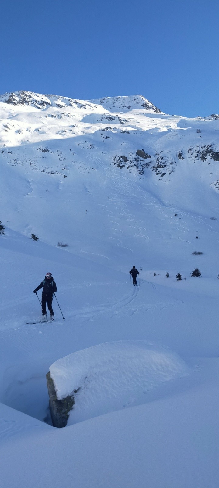 Conditions pour le ski : neige froide souvent poudreuse sur une bonne partie de l'itinéraire