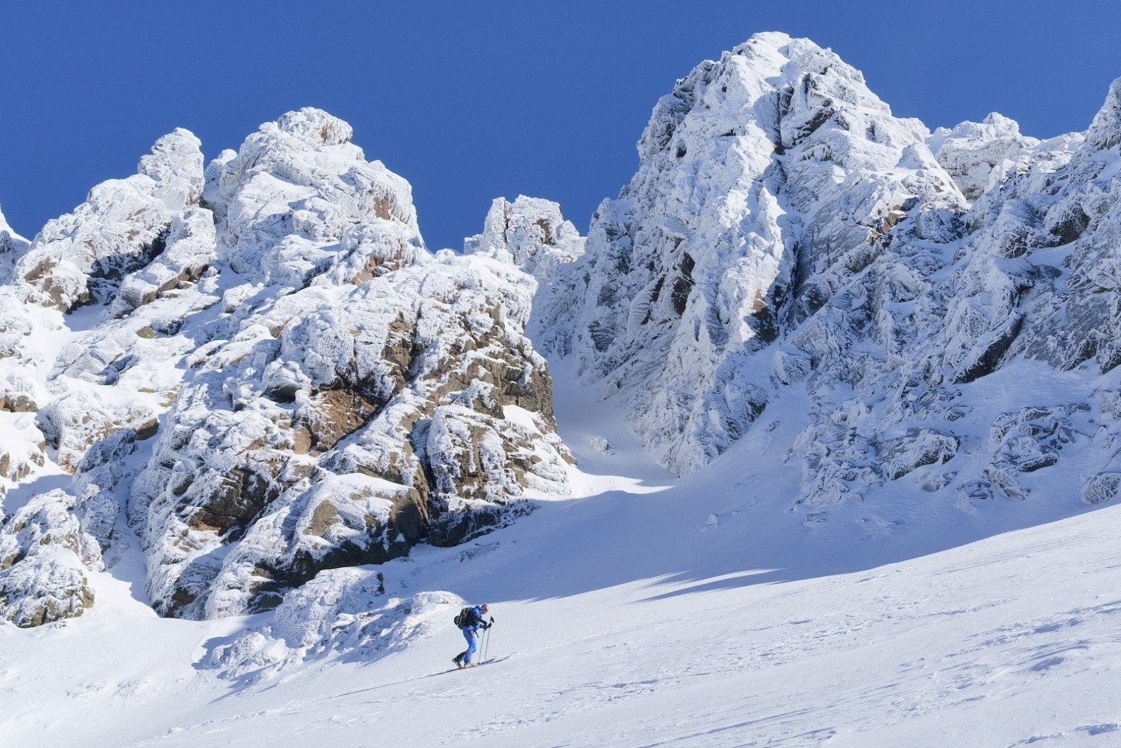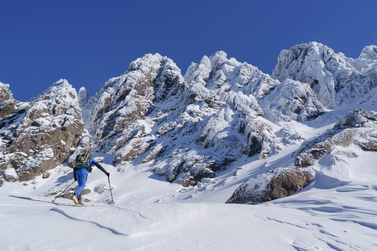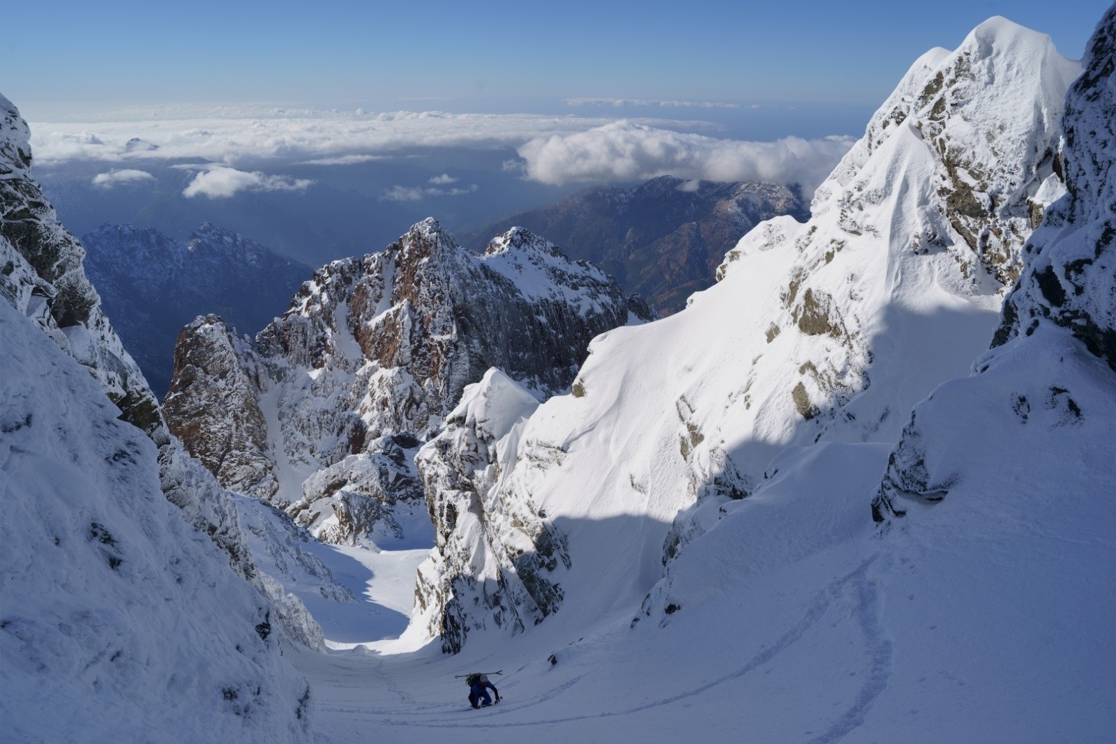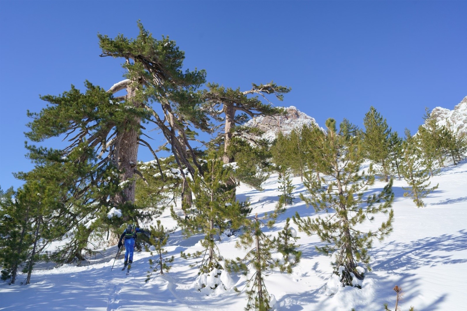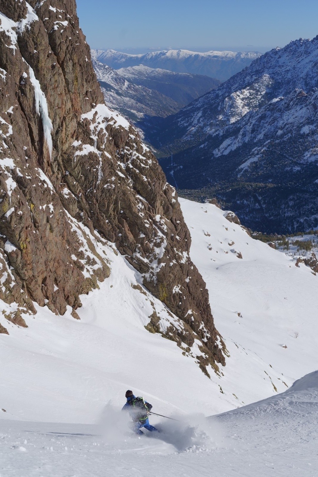 Itinéraire suivi : station de ski d'Asco - versant est de la Punta Missoghiu - descente vers 1900 m sous la brèche au sud de la Punta Stranciacone - brèche au sud de la Punta Stranciacone - fond du vallon à la cote 1800 m - couloir ouest de la Punta Minuta - station de ski d'Asco