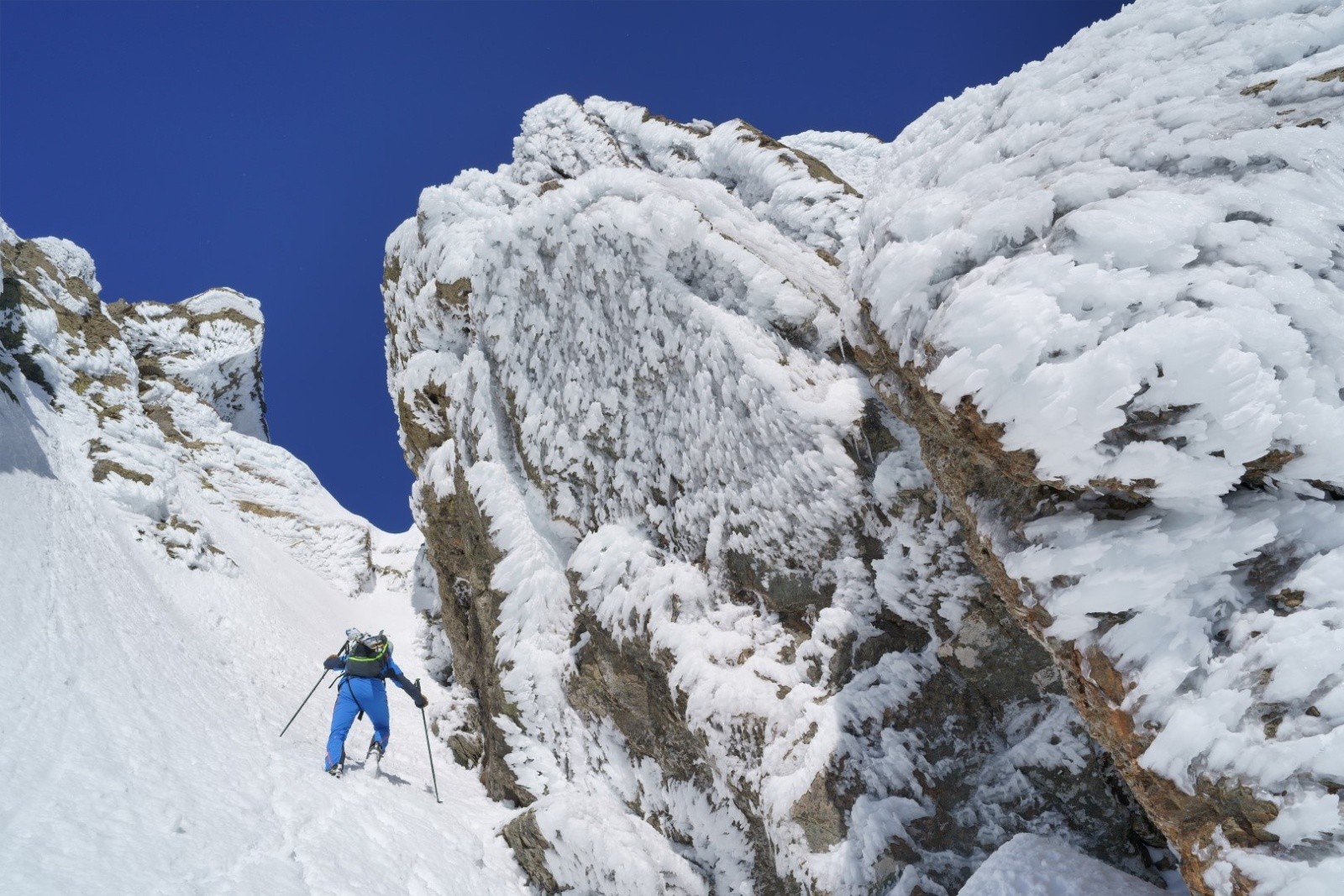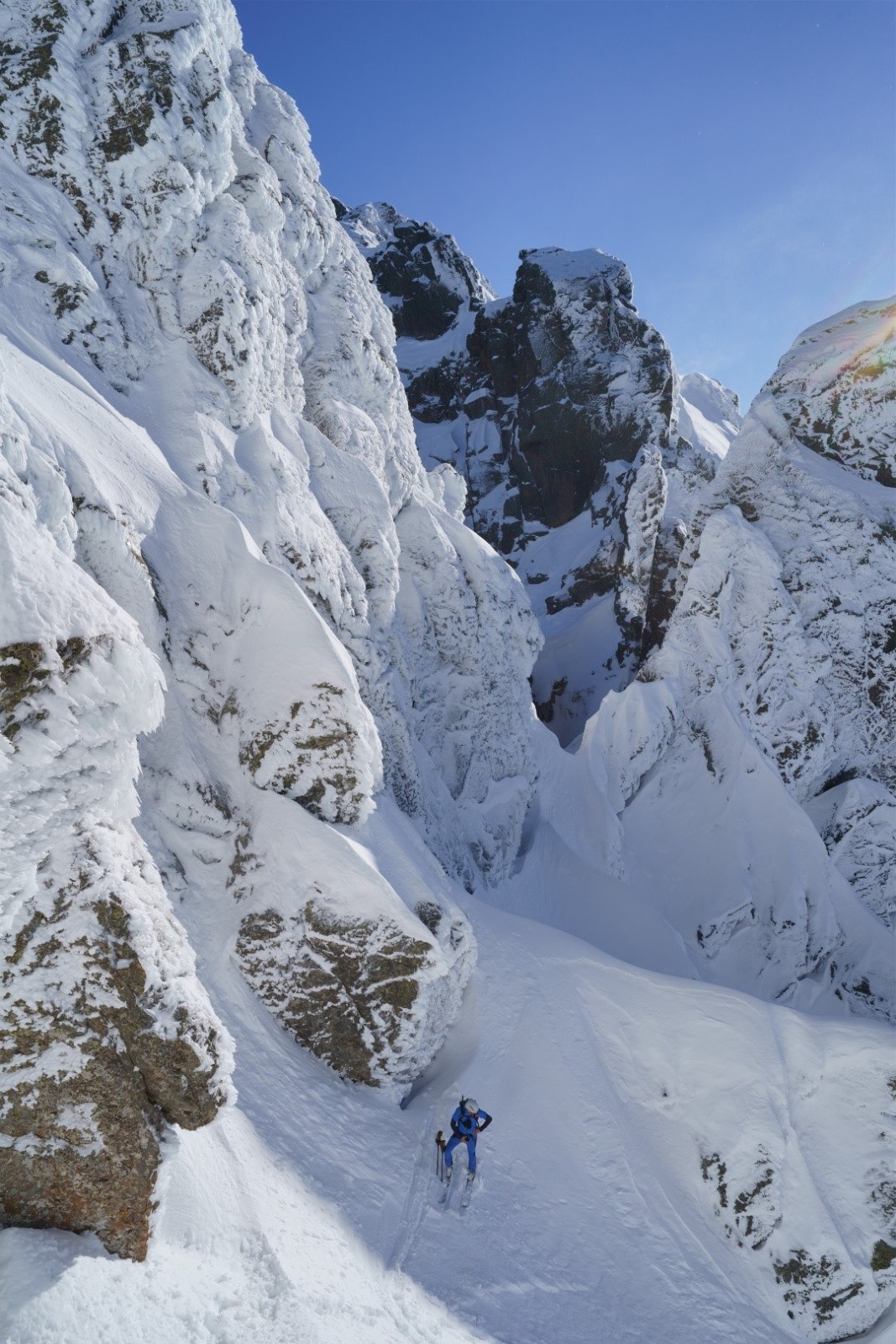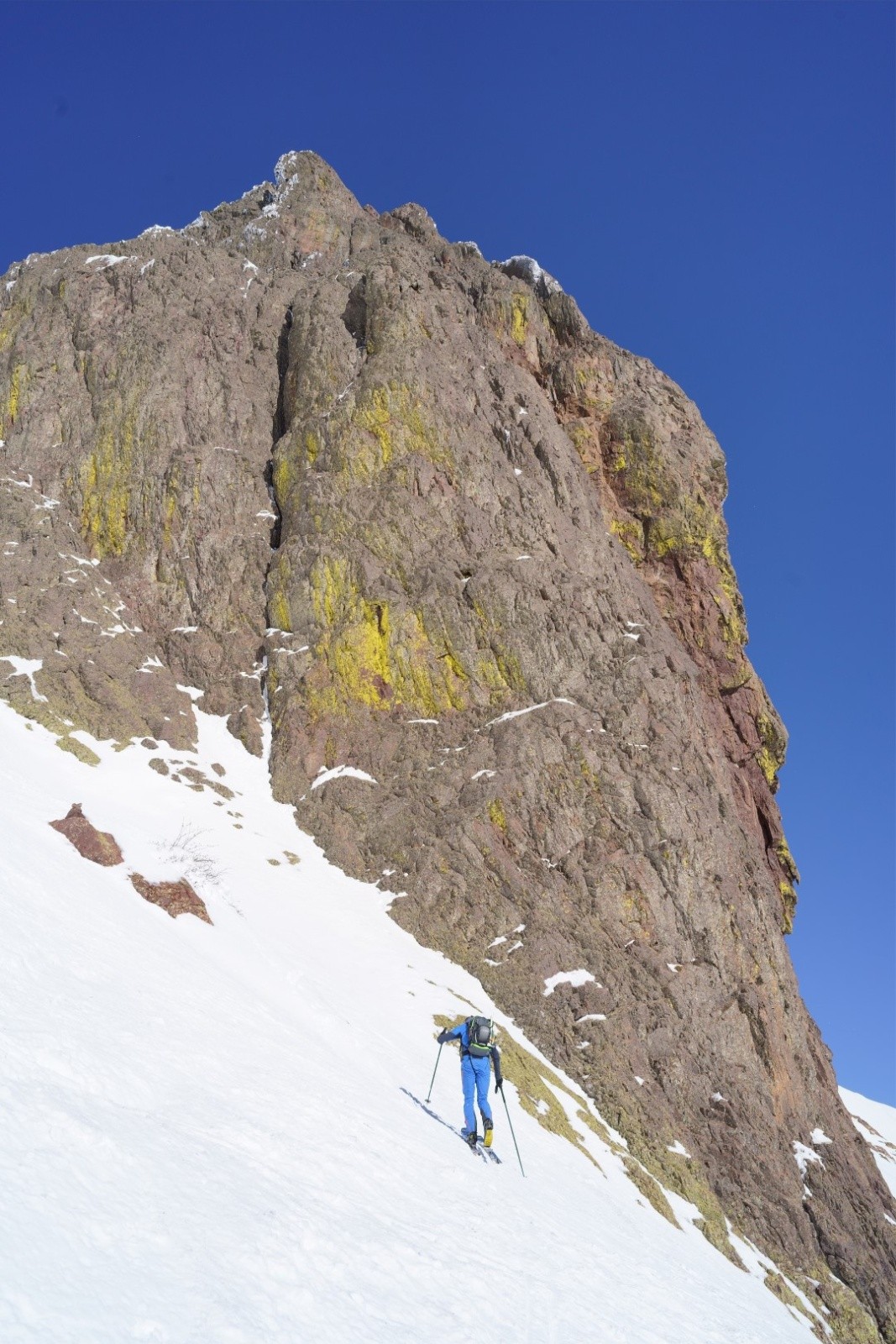 Conditions pour le ski : bonnes dans le couloir avec des filons de poudreuse entre la neige en cours de transformation dans les pentes sud et de la soufflée portante ailleurs. Sous le couloir neige soufflée portante avec un excellent grip, plus bas dans le vallon le vent et le soleil ont fait pas mal de dégâts avec une neige très hétérogène. On ira sans doute dorénavant plutôt en adrets pour profiter de la transfo qui commencera bientôt à être portante le matin.